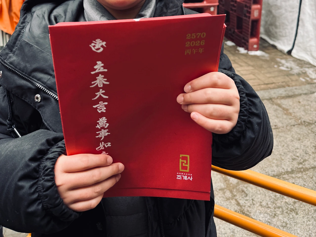 조끼를 입은 보살님이 발원문을 태우는 입춘행사라고 앞에 사람들 보고 잘 따라 하면 된다며 아이와 내 손에 빨간 봉투를 쥐어주었다. 이게 뭘까. 어떻게 하면 될까.