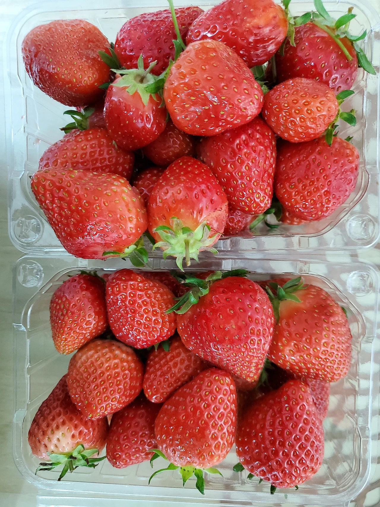 열심히 두통 가득 딸기를 담고 나니 농장분께서 아이들에게 시식용 딸기를 또 주신다. 아이들은 나란히 앉아 딸기를 또 먹는다. "너희 배 안 부르니"