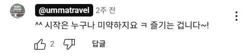 댓글을 적고 보니 기분이 더 좋아졌다. 이 정도면 유튜버 할 멘털 아닌가?라는 생각을 하고 있는 스스로가 웃겼다. 그리고 며칠 후 또 댓글이 달렸다.