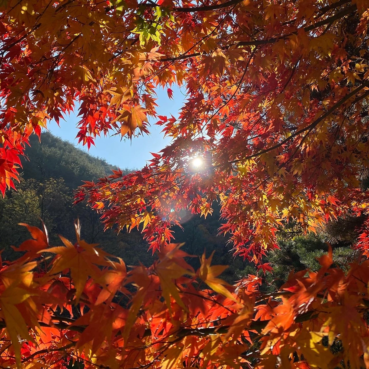 산의 맑은 공기도 너무 좋았고, 어떤 걸로도 흉내 낼 수 없는 낙엽의 오묘한 색깔이 너무 예뻤다...!