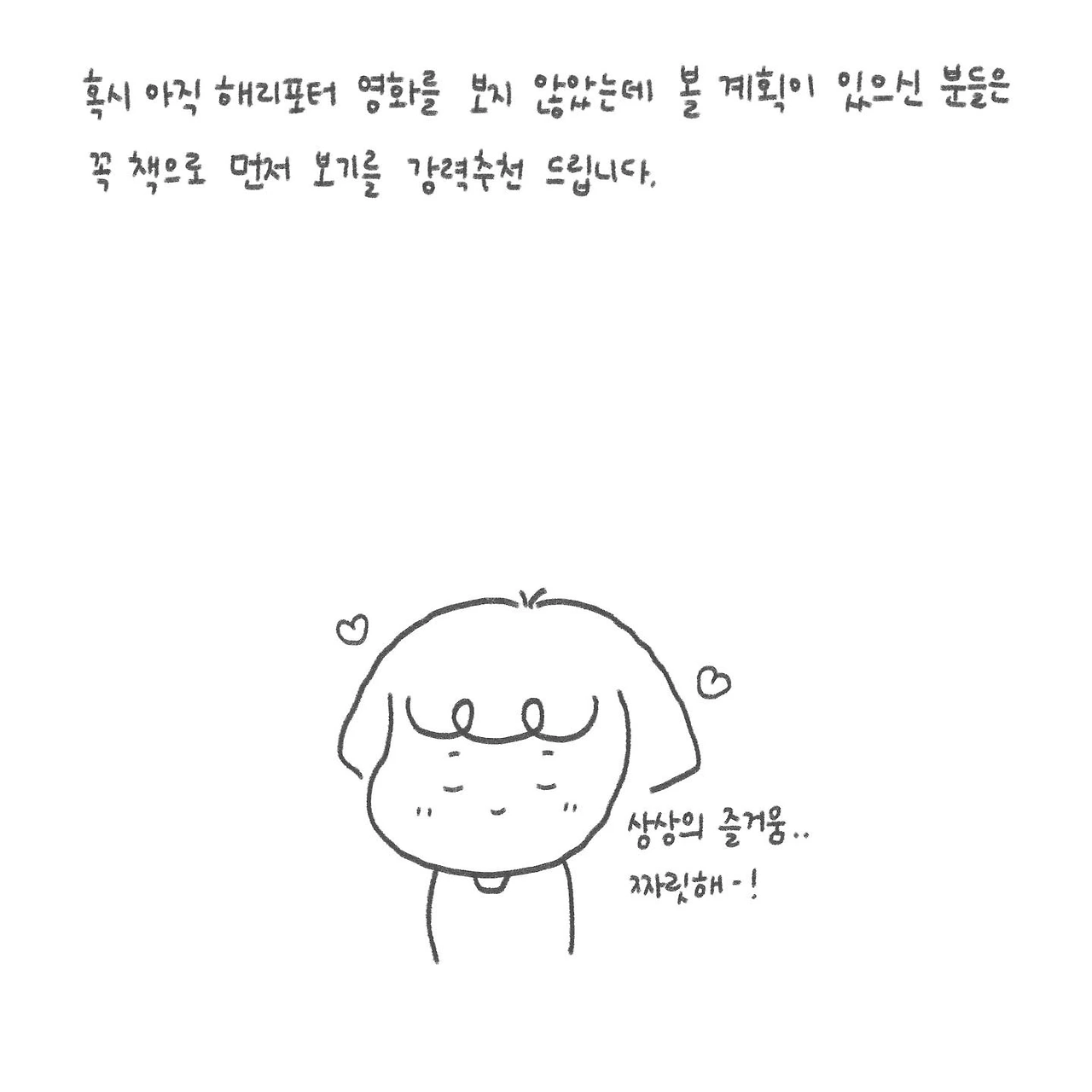 그래서 해리포터를 아직 접해보지 못하신 분들이 있다면 책을 꼭 먼저 읽으라고 추천해드리고 싶네요! 책이 주는 상상력의 기쁨을 만끽해봐요!