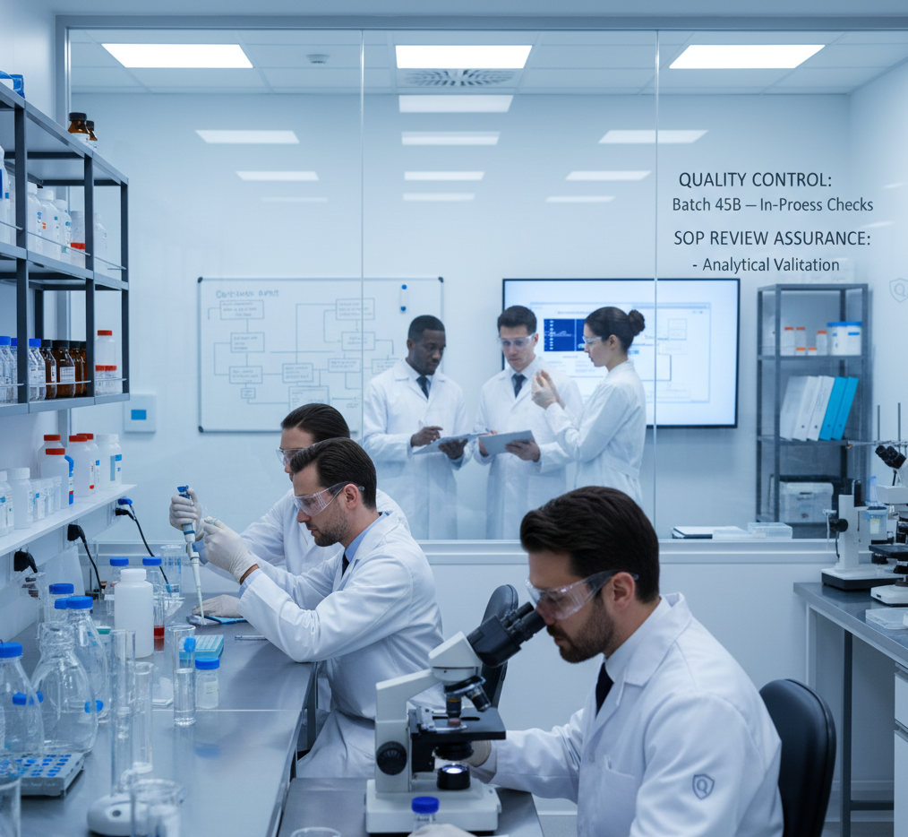 Throughout this entire journey, an unseen guardian is always watching: the Quality team. Quality Control (QC) specialists test samples at every single step, ensuring everything meets specifications. Quality Assurance (QA) professionals ensure that the entire system—all the rules, procedures, and training—is designed to guarantee a safe and effective product, every single time.