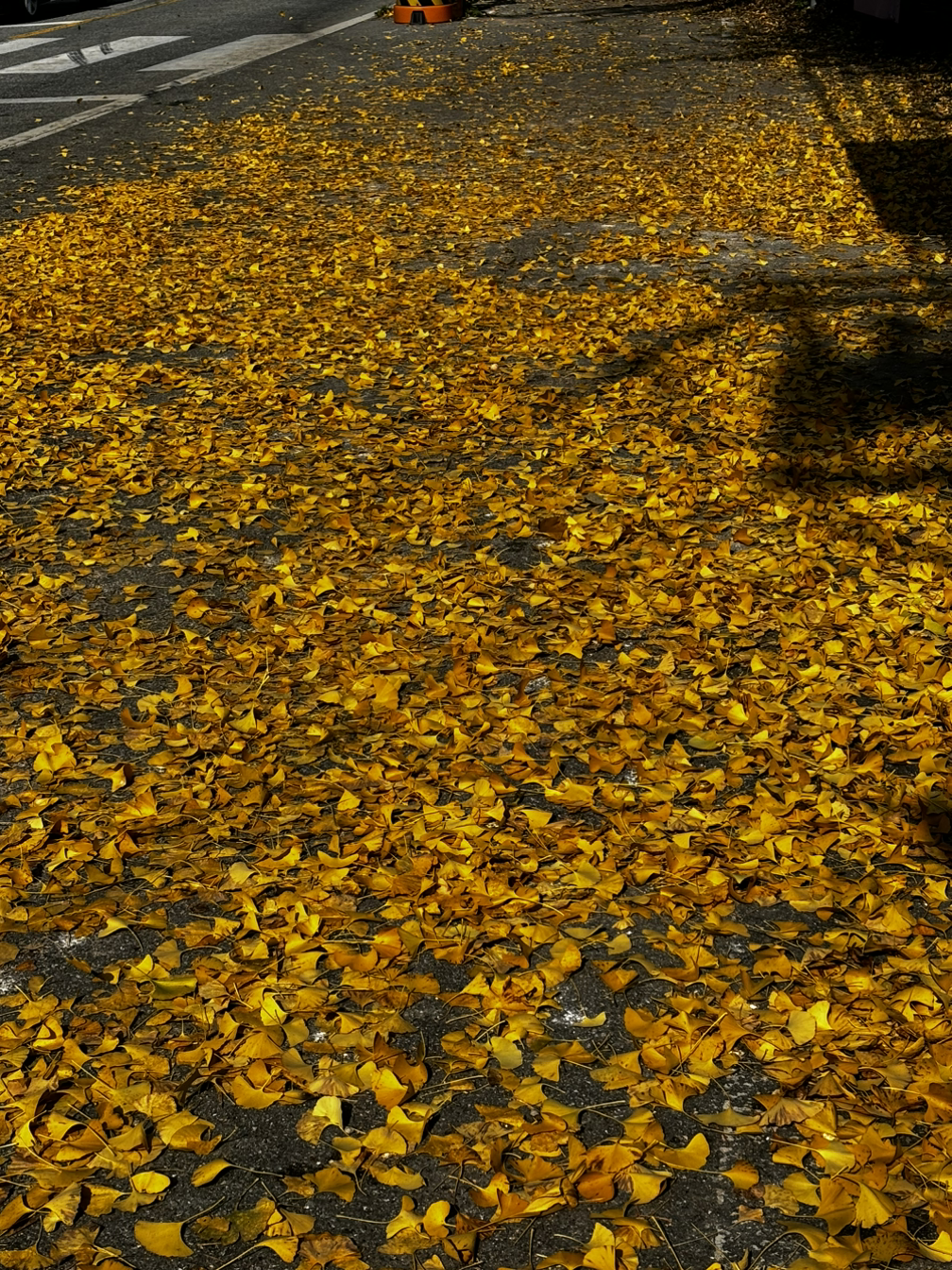 바람을타고 바닥으로 내려앉은 낙엽들은