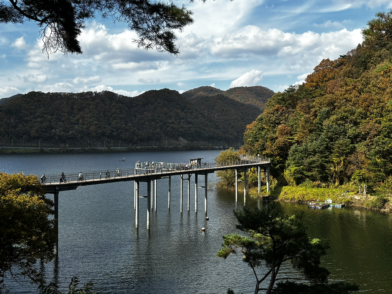 춘천호를 왼쪽에 두고 자전거는 끝없이 깔린 데크길을 따라 목적지인 소양강처녀상 근처의 식당으로 향했다.