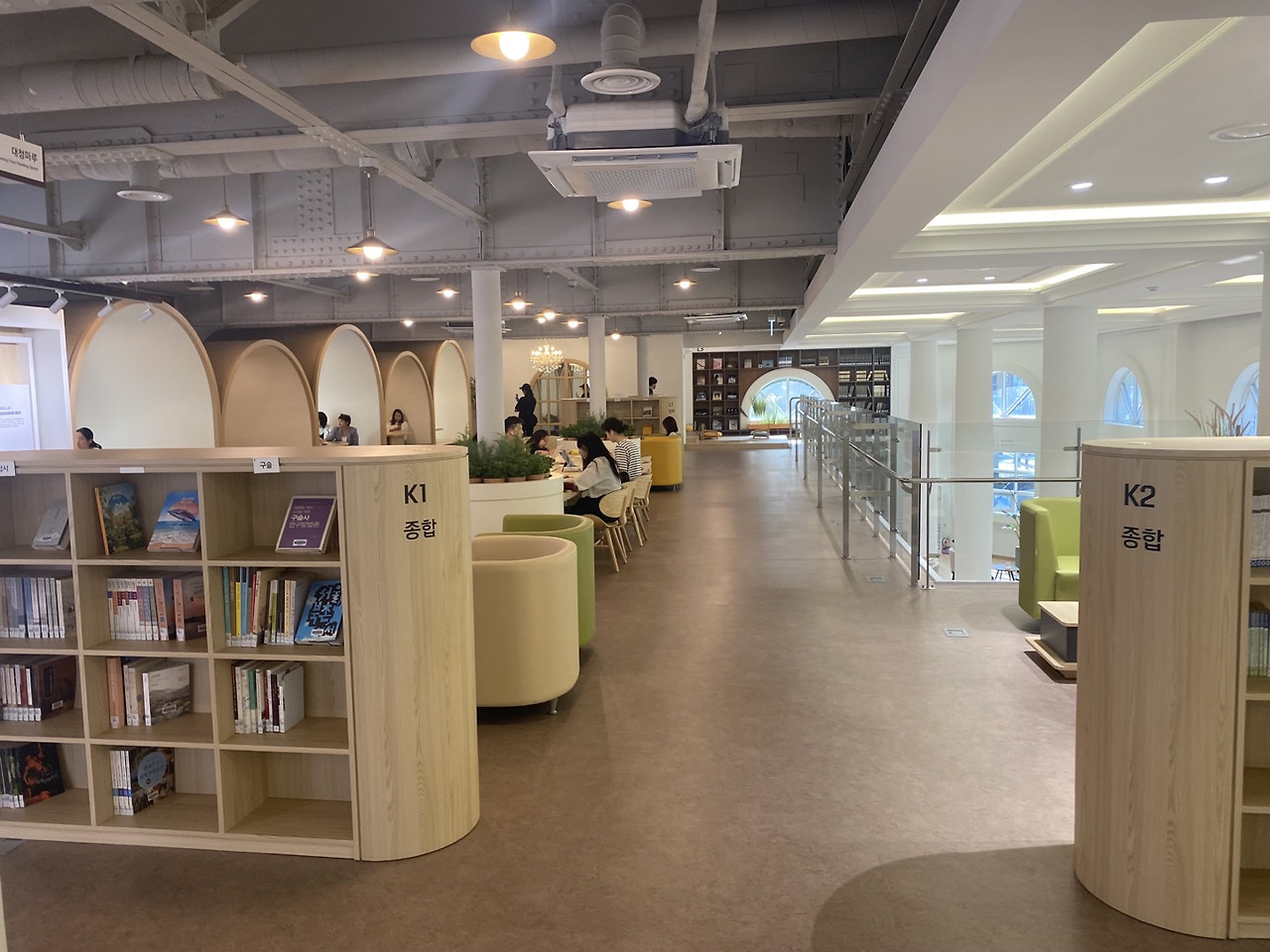(아, 시장을 지나가면서 여름에 신을 실내 슬리퍼도 샀다. 예전에 샀던 여름 슬리퍼가 다 떨어져서 하나 장만해야지 했는데 비슷한 신발을 발견하고는 두말없이 구입을했다.) 원래 잡채를 좋아라해서 물당면과 비빔 당면을 각각시켜서 같이 나눠서 맛잇게 먹고 주차장으로 발길을 돌려 가고있는데 부산역사 문화관이라는 곳이 눈에 들어왔다. 뭐하는 곳인지 궁금증이 생겨 들어가 보았는데 여긴 새로 인테리어를 해서 서점과 카페의 분위기가 혼재한 멋진 공간으로 탈바꿈 되어 있엇다. 꽂혀있는 책도 한권 읽어보고 간만에 여유롭게 집이 아닌 곳에서 시간의 구애없이 독서도 해보았다. 국제시장을 방문하는 관광객이라면 한번쯤 들러서 건물에 얽힌 역사도 공부하고 여유롭게 책도 한번 읽어보길 권한다.