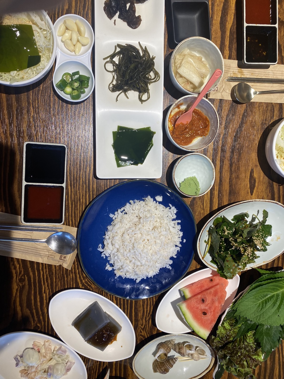 이미 많은 차량들이 차박을 위해서 해안 뚝방길을 따라 줄줄이 늘어서 있었고 다행이 우리는 괜찮은 주차 자리를 찾아 주차를 하고 허기진 배를 채우기 위해 주변 식당으로 향했다 칠암리라고 하는 이곳은 붕장어로 유명한 마을이었고 횟집이라는 간판을 단 가게에는 대부분 붕장어 회와 구이를 판매하고 있었다.
