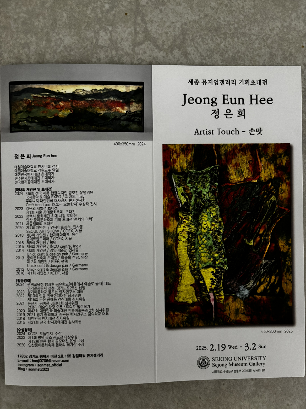 오늘은 예교리 멤버 중 한 분인 정은희 작가의 전시회가 있는 날이라고 일찌감치 지영 작가님이 공지를 올려주셔서 세종대학교내 세종뮤지엄갤러리에서 같이 작품을 감상하기로 한 날이다.