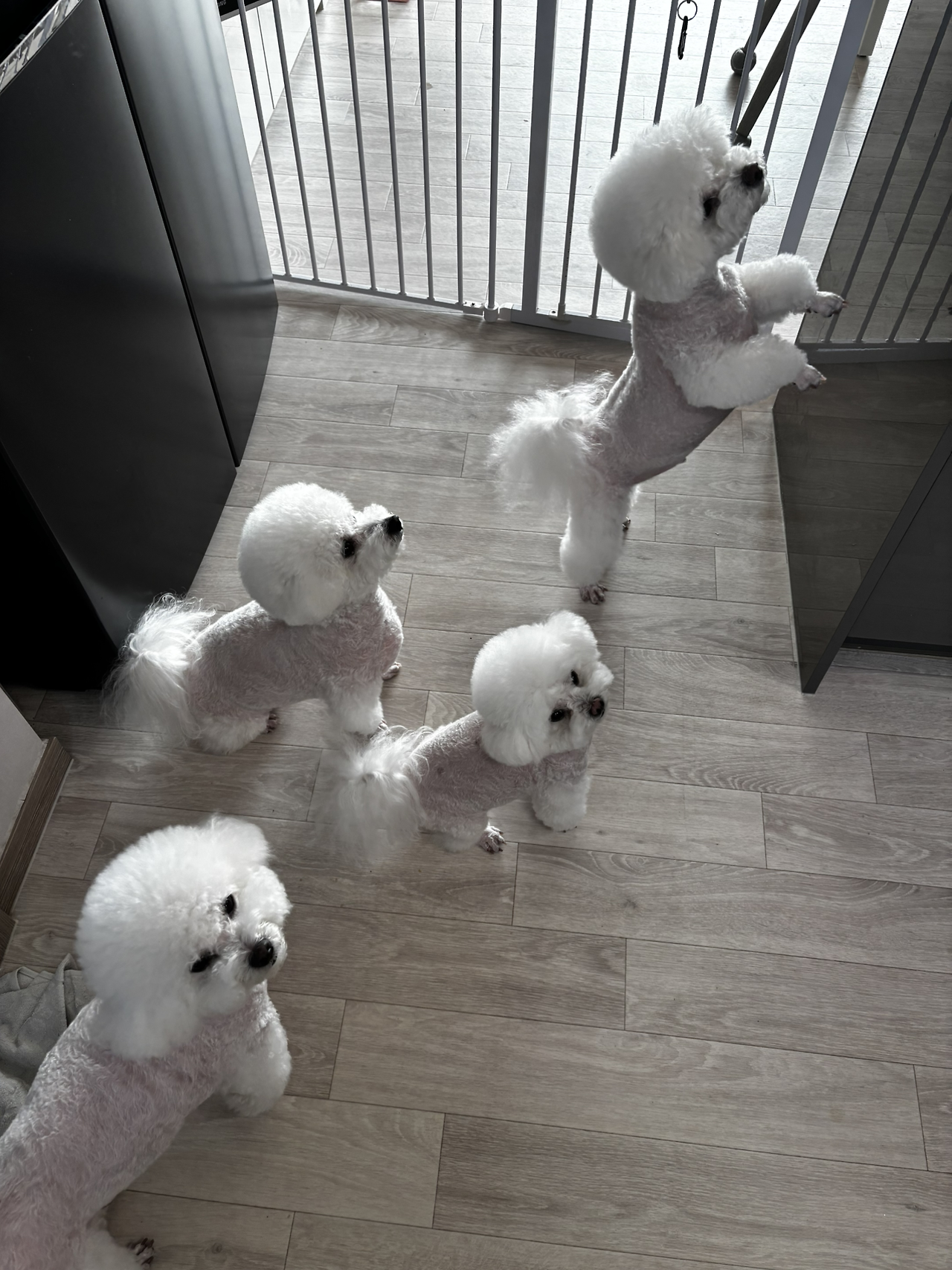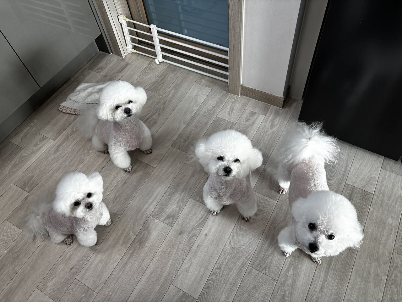 늘 주방으로 나오면 네 마리 강아지들이 따라 들어와서 뭐라도 달라는 시선을 보낸다. 8개의 눈이 애처롭게 보고 있는 모습을 보면 정말 뭐라도 주지 않을 수가 없다