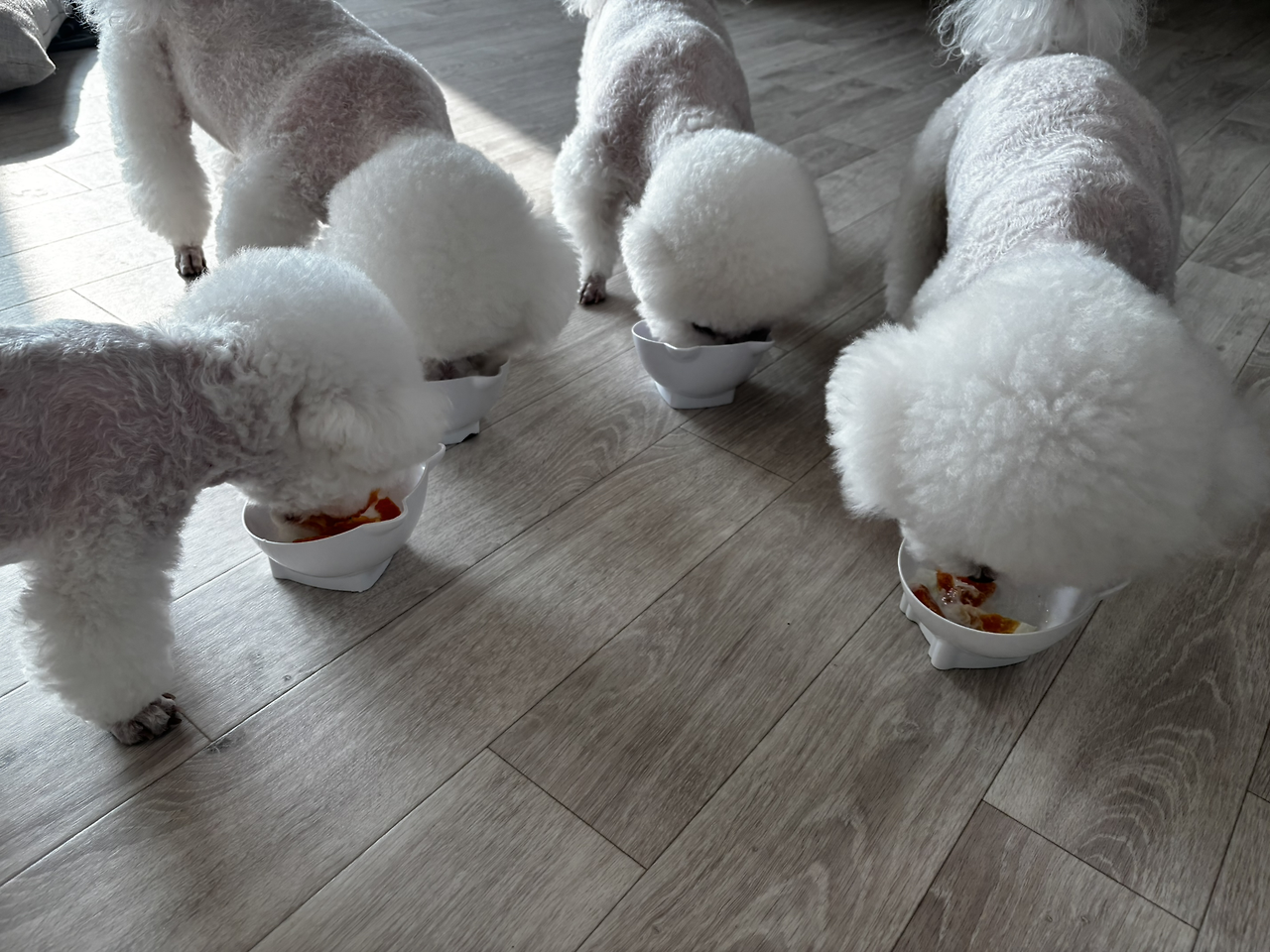 강아지들과 함께하는 아침 식단