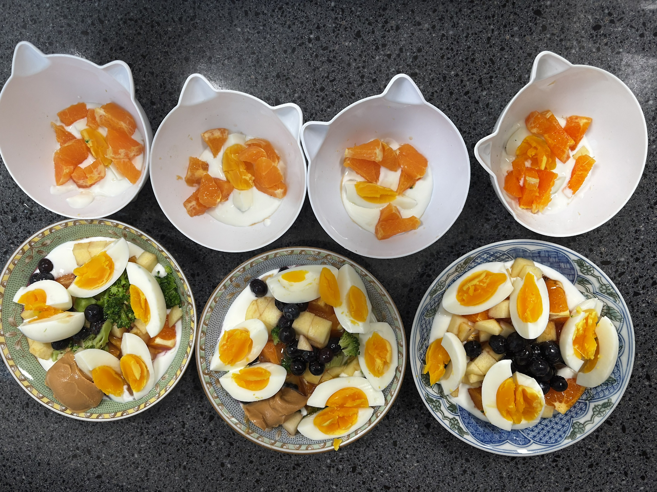 요거트를 주기는 하지만 오늘은 달걀 1/4쪽과 천혜향 그리고 요거트를 함께해서 총 7인분(?)의 요거트 샐러드를 준비했다.