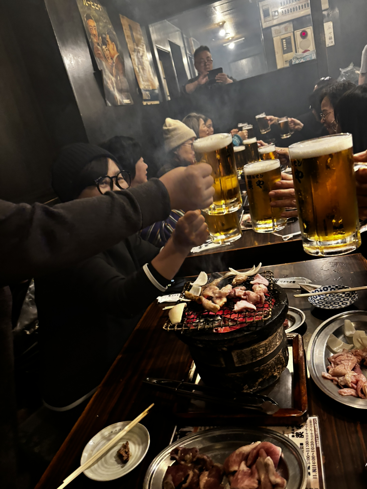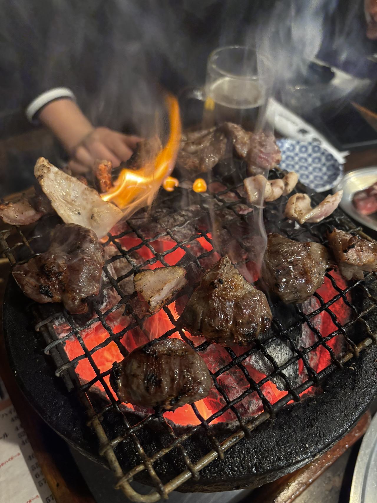식당은 북해도 전통 숯불구이집인데 들어가기 전 심호흡을 몇 번 하란다. 이유는 들어가면 안다고 문을 열고 들어가니 연기가 자욱하다. 순간 왜 심호흡을 시켰는지 알 거 같았다. 부위별로 고기가 소복이 올려져 나왔다. 숯불에 굽자 연기가 피어올랐다. 생맥주에 곁들이는 안주로는 제격이다. 역시 술이란 가장 인간친화적 음료라는 생각이 든다.