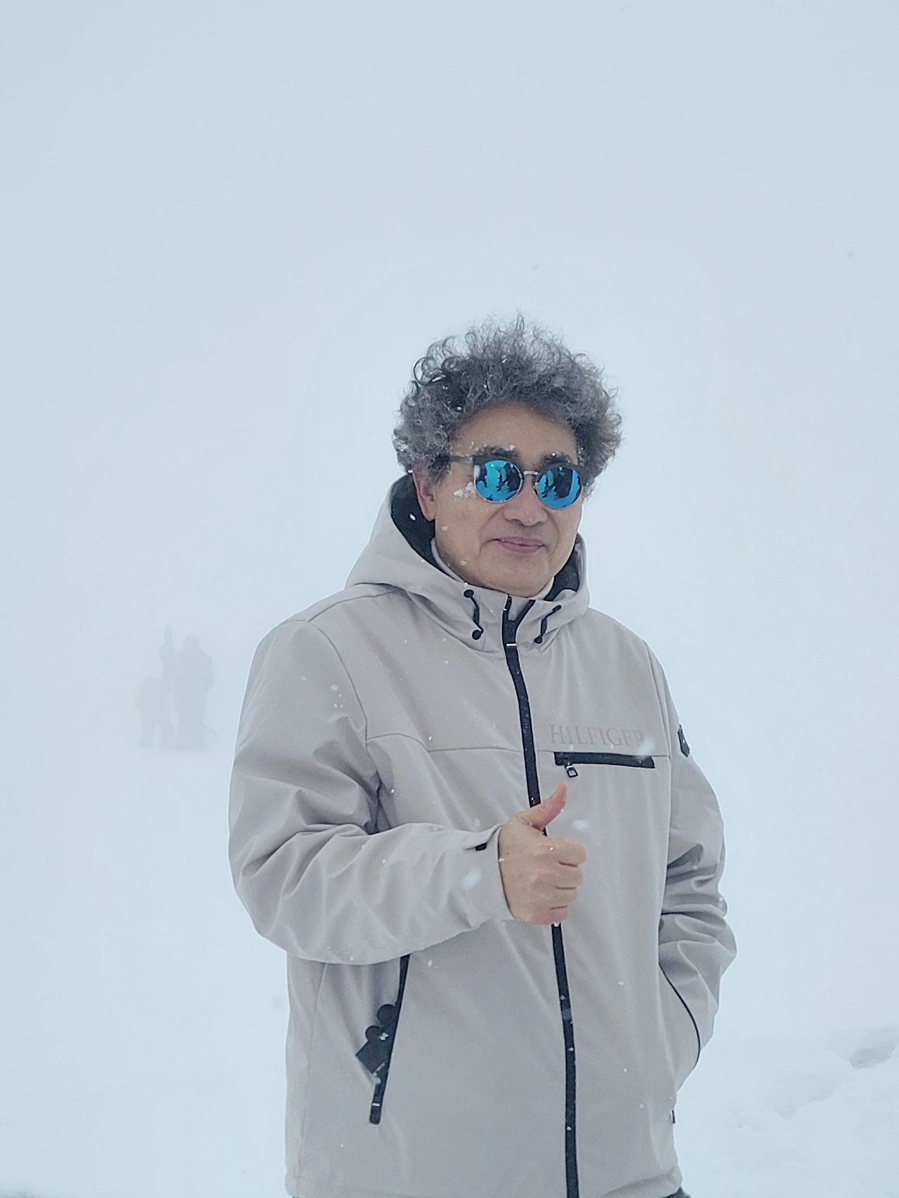 눈못뜨는 눈보라를 맞으며 포즈를 취해본다.