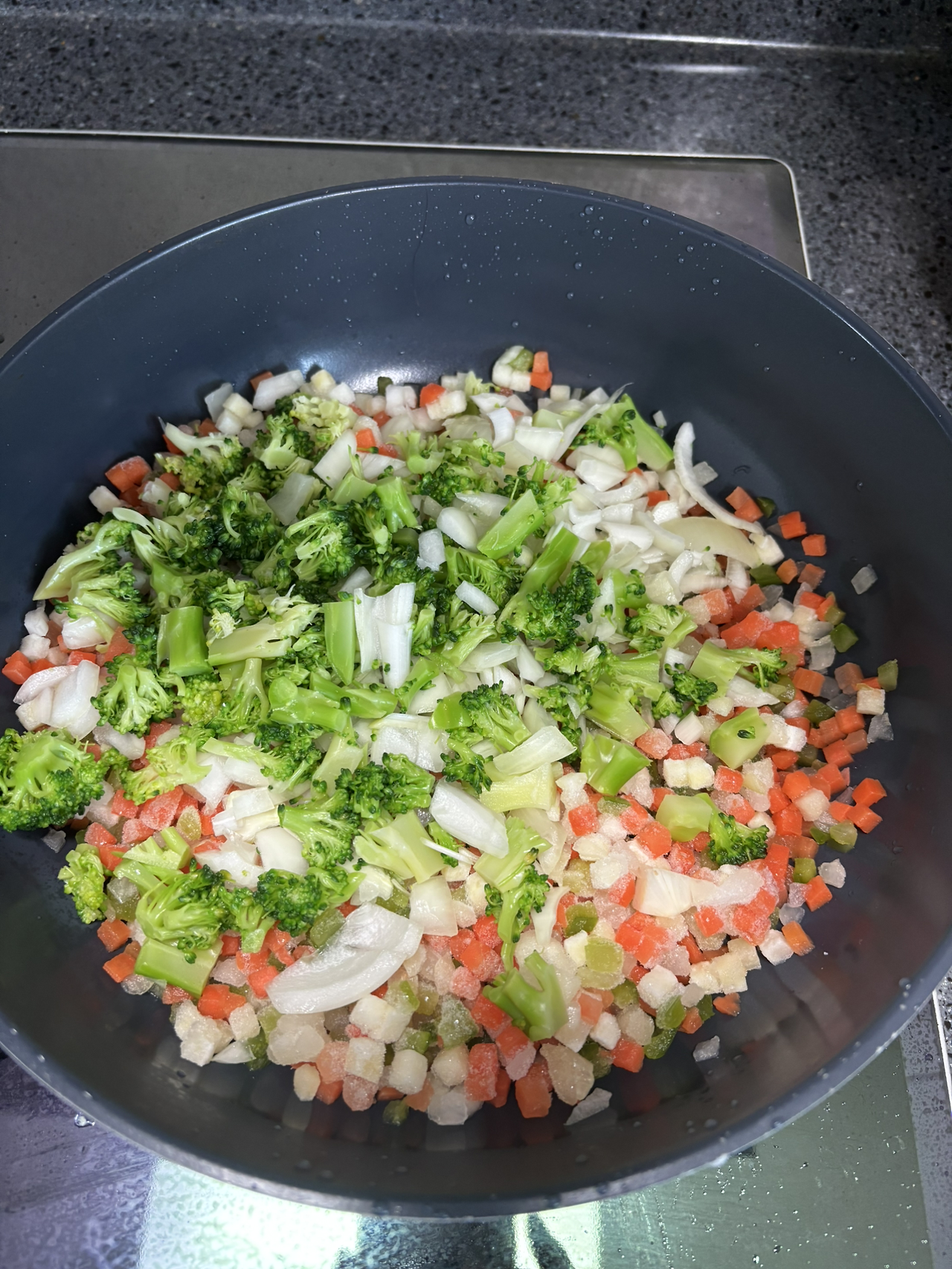 우선 쌀을 씻어 밥솥에 취사 버튼을 누르고, 냉동실에서 볶음밥용 야채를 꺼냈다. 가장 손쉽게 만들 수 있는 요리가 볶음밥이라는 생각에서다. 하지만 시중에서 판매하는 볶음밥용 야채만으로는 뭔가 부족해 보여 브로콜리를 데치고 양파를 썰어 추가했다.