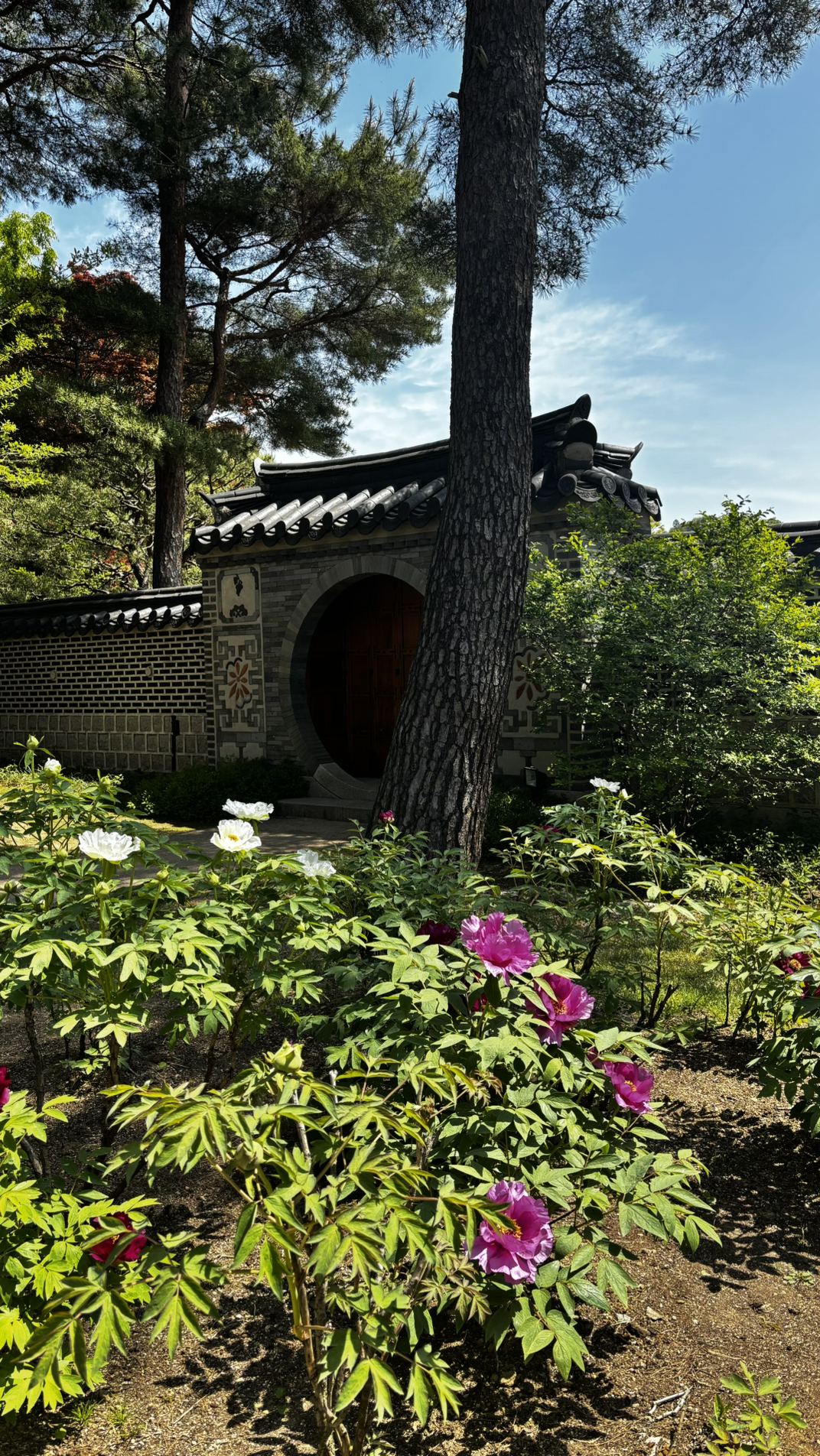 한 달 전, 예교리 동기들과 겸재 정선의 전시회를 함께 보기로 약속했었다. 미술을 사랑하는 임지영 작가의 제안으로 성사된 자리였다. 이른 아침, 리움미술관에서 호암미술관으로 향하는 셔틀버스를 타기 위해 한강진역으로 향했다. 작년 겨울, 처음으로 호암미술관을 찾았던 기억이 떠올랐다. 잔설이 남아 있던 그 계절의 미술관은 을씨년스럽고 차가운 공기로 가득했지만, 봄을 지나 초여름으로 향하는 오늘의 풍경은 전혀 달랐다. 초록이 무성하게 자라 있었고, 햇살은 부드럽게 대지를 감쌌다. 완연한 소풍날이었다. 미술관 앞뜰에는 하얀색과 붉은색 작약이 탐스럽게 피어 있었고, 오랜만에 마주한 꽃이 반가워 한참을 바라보았다.