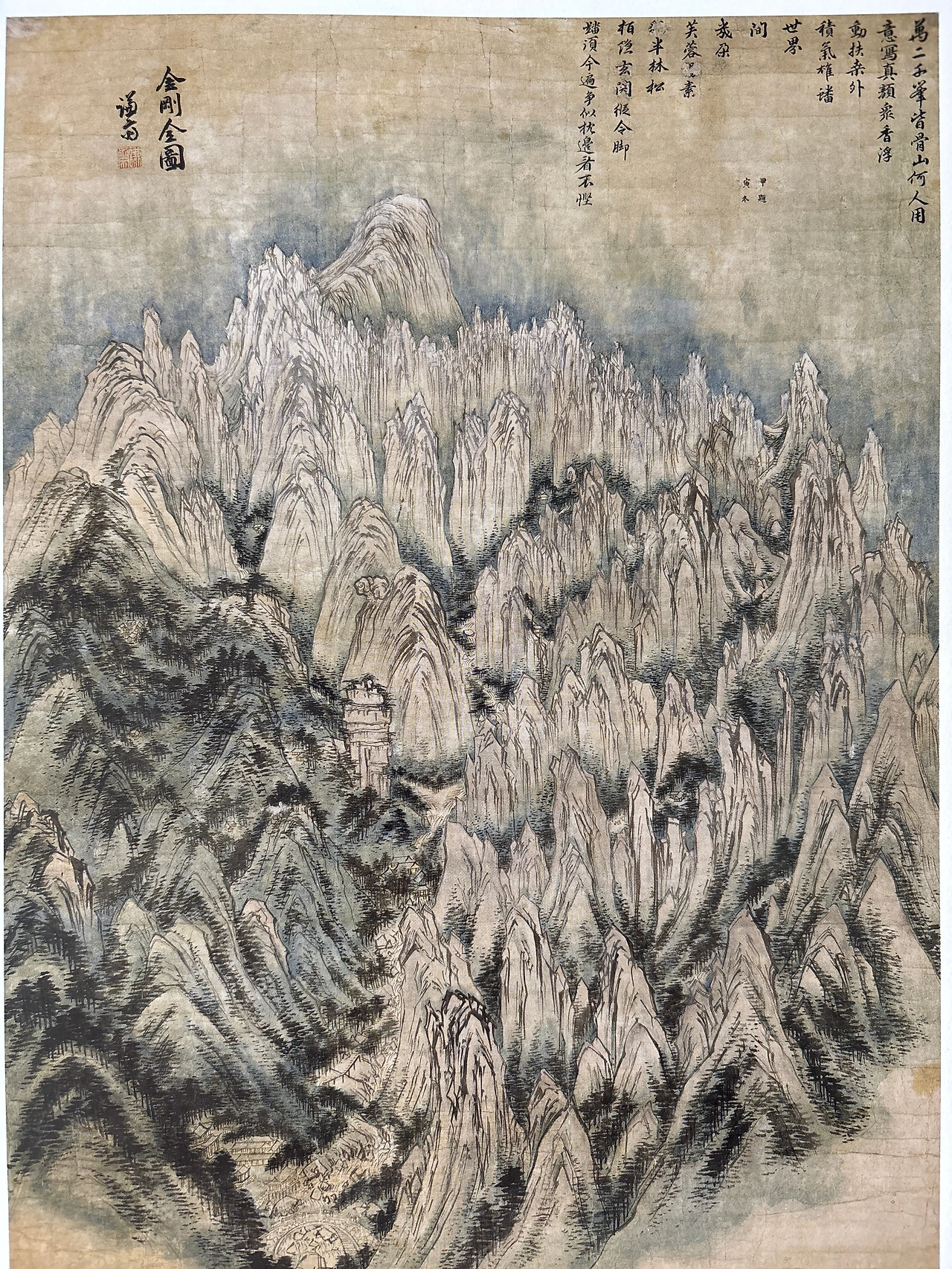 전시장에 들어서자마자 가장 먼저 마주하게 되는 작품은 《금강전도》였다. 겸재가 바라본 금강산은 단지 하나의 경관이 아니라, 거대한 정신의 지형처럼 다가왔다. 특히 《봉래전도》는 3미터가 넘는 스케일로 금강산의 웅대한 모습을 화폭에 옮겨놓았다. 정선의 붓끝은 단순히 산과 물을 그리는 것을 넘어서, 자연이 지닌 고요함과 숭엄함을 실어내고 있었다. 그 앞에 서자, 나는 무언가에 압도된 듯 숨을 고르게 되었다.