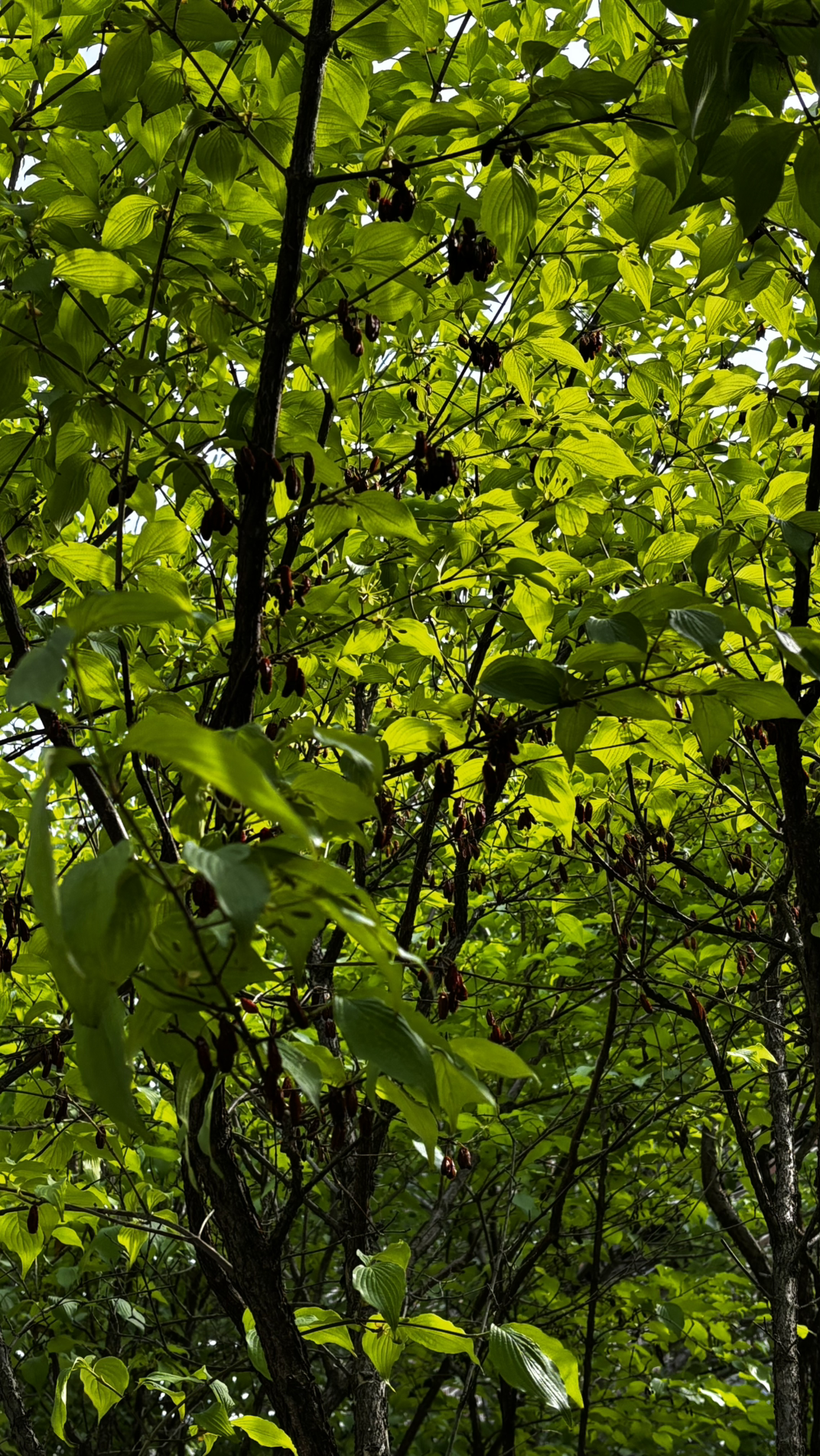 그중 산수유나무에 눈길이 머물렀다. 새로 돋은 잎들 사이로 검게 쪼그라든 산수유 열매들이 말라붙은 채 가지에 매달려 있었다. 생명의 시작과 끝, 그리고 그 사이의 모든 시간이 한 나무에 얽혀 있는 듯한 모습이었다. 햇살 아래 반짝이는 새순과는 다르게, 그 검은 열매들은 이미 생을 다한 채 말라붙어 있었지만, 가지를 떠나지 못하고 버티고 있었다. 봄날의 따스함 속에서도 한겨울의 그늘을 품은 듯한 모습이었다. 가야 할 때를 알면서도 떠나지 못한, 아니 떠나지 못하고 남은 것들의 안쓰러움이 그 위태로운 풍경 속에 담겨 있었다.