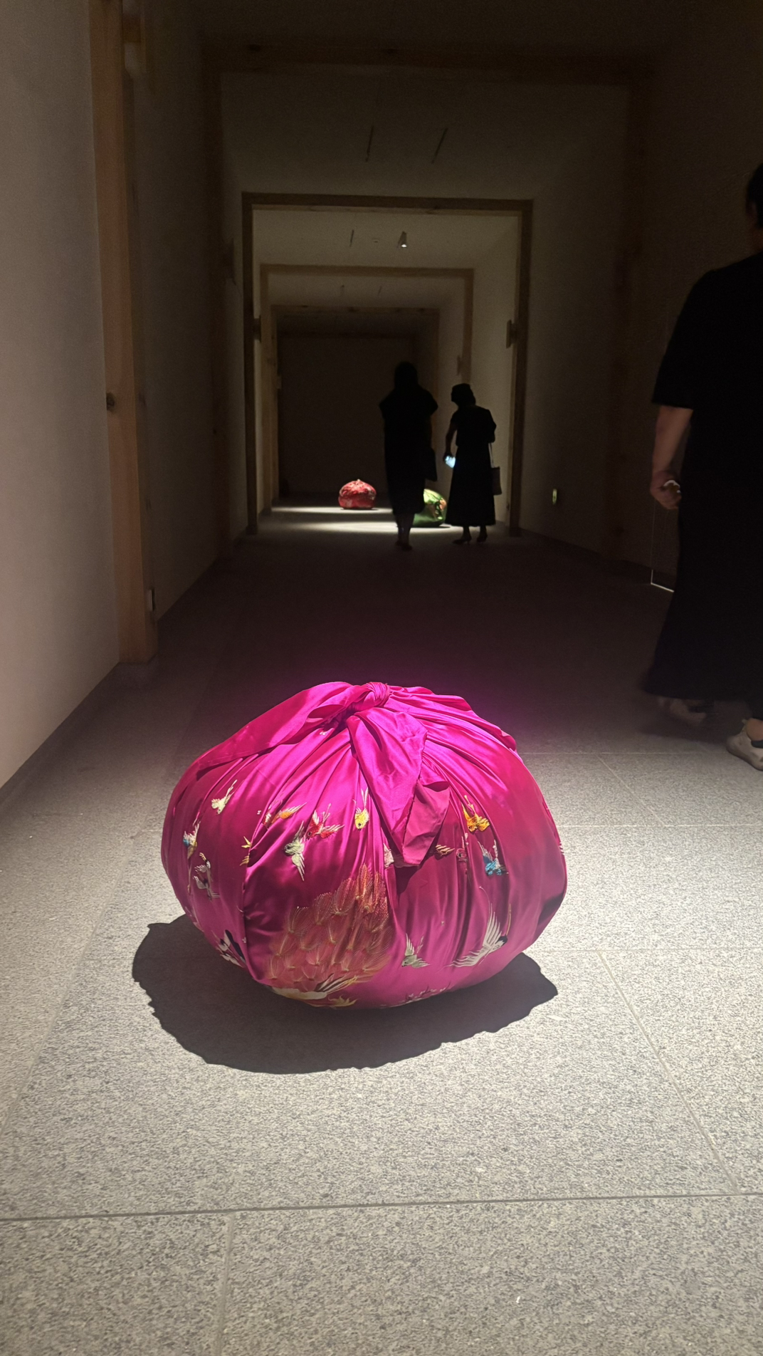 지하 복도에 놓인 보따리들은 묘한 울림을 남겼다. 어린 시절 책보가 되기도 하고, 피난의 상징이 되기도 하던 보자기가, 오늘은 미술관 한가운데 놓여 있었다. 그 안에는 무엇이 들어 있을까. 각자의 희망, 사연, 혹은 눈물 어린 기억일 것이다. 나는 무심코 지나쳐온 보자기 하나에도 삶의 서사가 담겨 있음을, 그날깊이 깨달았다.