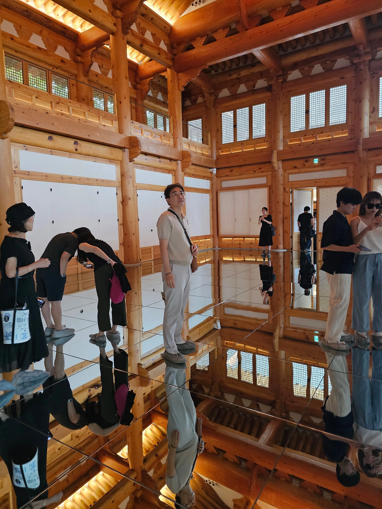 거울방에 들어섰을 때, 나는 순식간에 또 다른 세계로 끌려갔다. 사방의 풍경이 거울에 반사되고, 나조차 피사체가 되어 공간을 유랑한다. 내가 누구인지, 어디에 서 있는지조차 분간이 안 되는 순간. 빈 공간을 가득 채운 거울의 마법 속에서 나는 ‘나’이면서 동시에 ‘타인’이었다. 예술은 때로 우리 존재의 경계를 허무는 일임을 체감하게 된다.