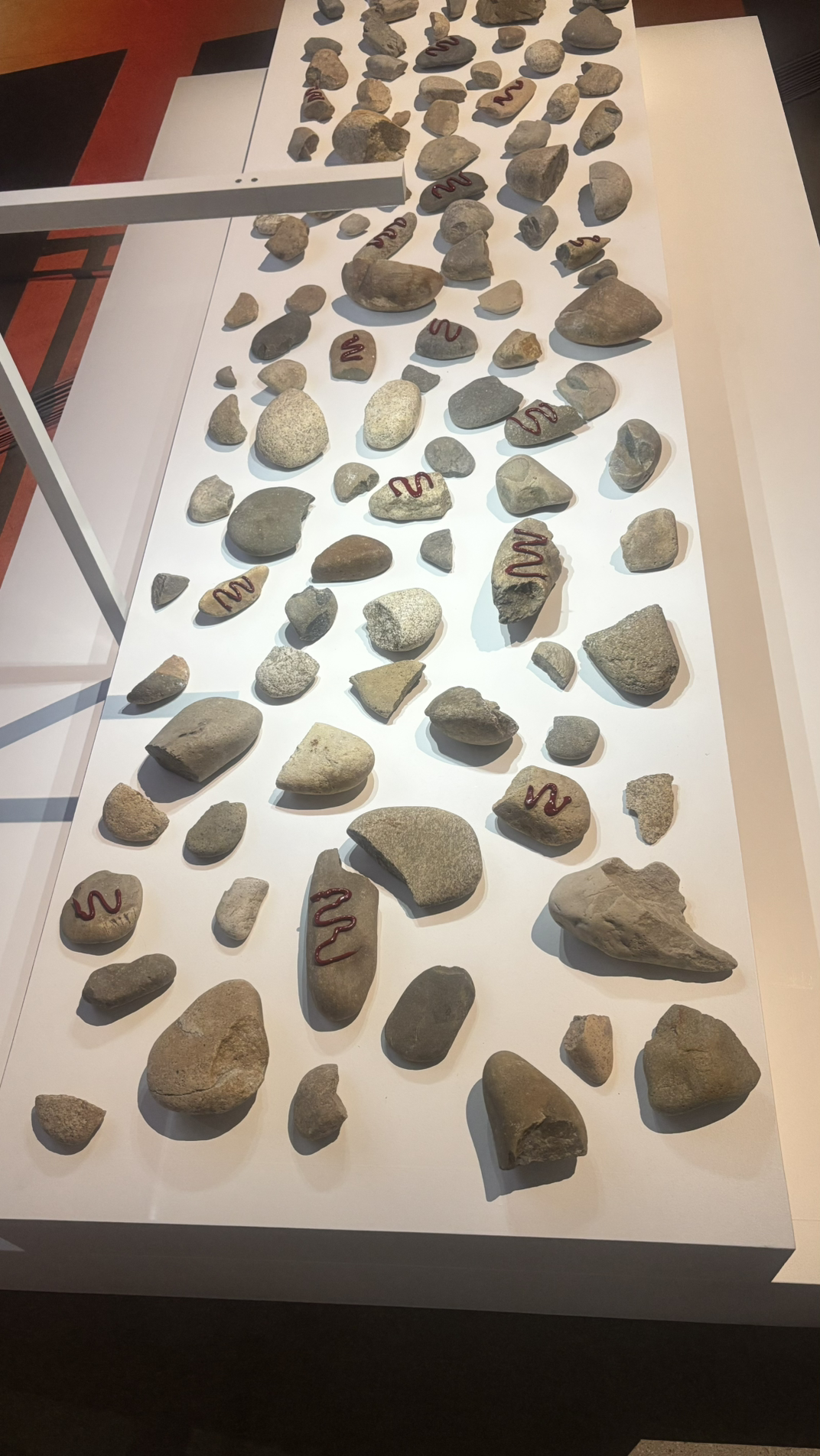 토마토는 늘 그리운 과일이다. 몸에 좋다 해서 매일 먹으려 하지만, 잘 되지 않는다. 그런데 작가는 그 토마토를 신석기 유물 같은 돌덩이에 올려놓았다. 그 위엔 케찹이 흐르고, 핫도그로 변주되기도 했다. 익숙한 과일이 낯선 조형물로 바뀌자, 친근함보다 어색함이 먼저 다가왔다. 저걸 먹다간 이빨이 다 나가버릴 것만 같았다. 익숙함을 비틀어 낯섦으로 만드는 작가의 의도가 오히려 묘한 웃음을 자아냈다.