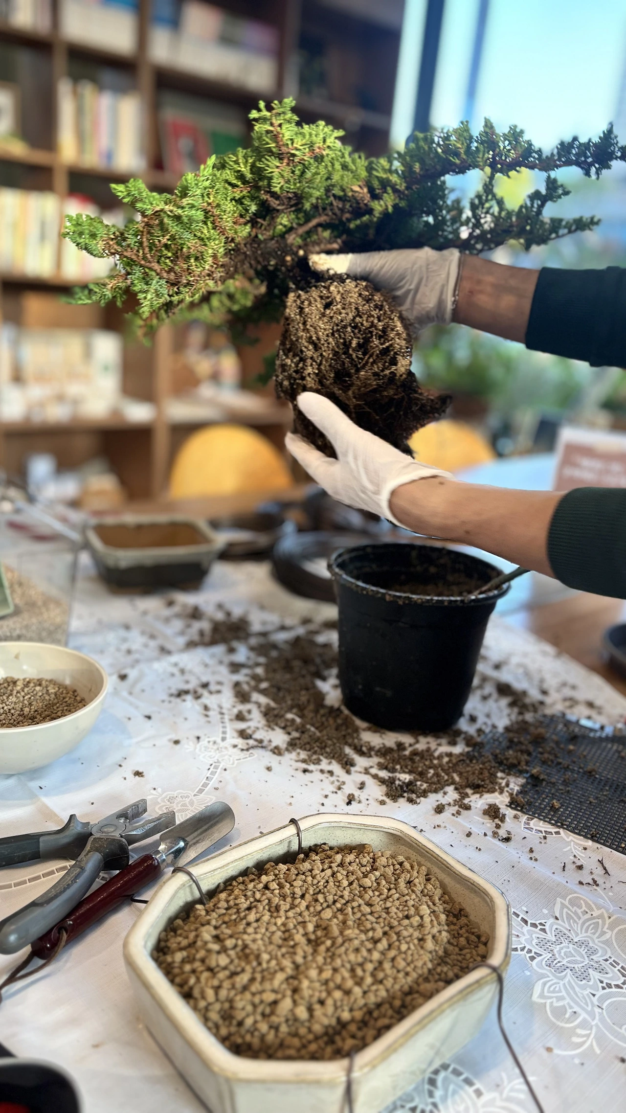 아이보리 색 분을 고르는 순간부터 마음은 고요해졌다. 나무의 성격과 분의 색감, 모양이 어우러져야만 한 폭의 그림처럼 어울린다 했다. 바닥에는 거름망을 설치하고, 뿌리가 흔들리지 않도록 철사를 단단히 고정했다. 플라스틱 화분 속 흙을 털어내고 잔뿌리를 정리하는 과정은 마치 새로운 삶의 터전을 마련해 주는 의식 같았다.
