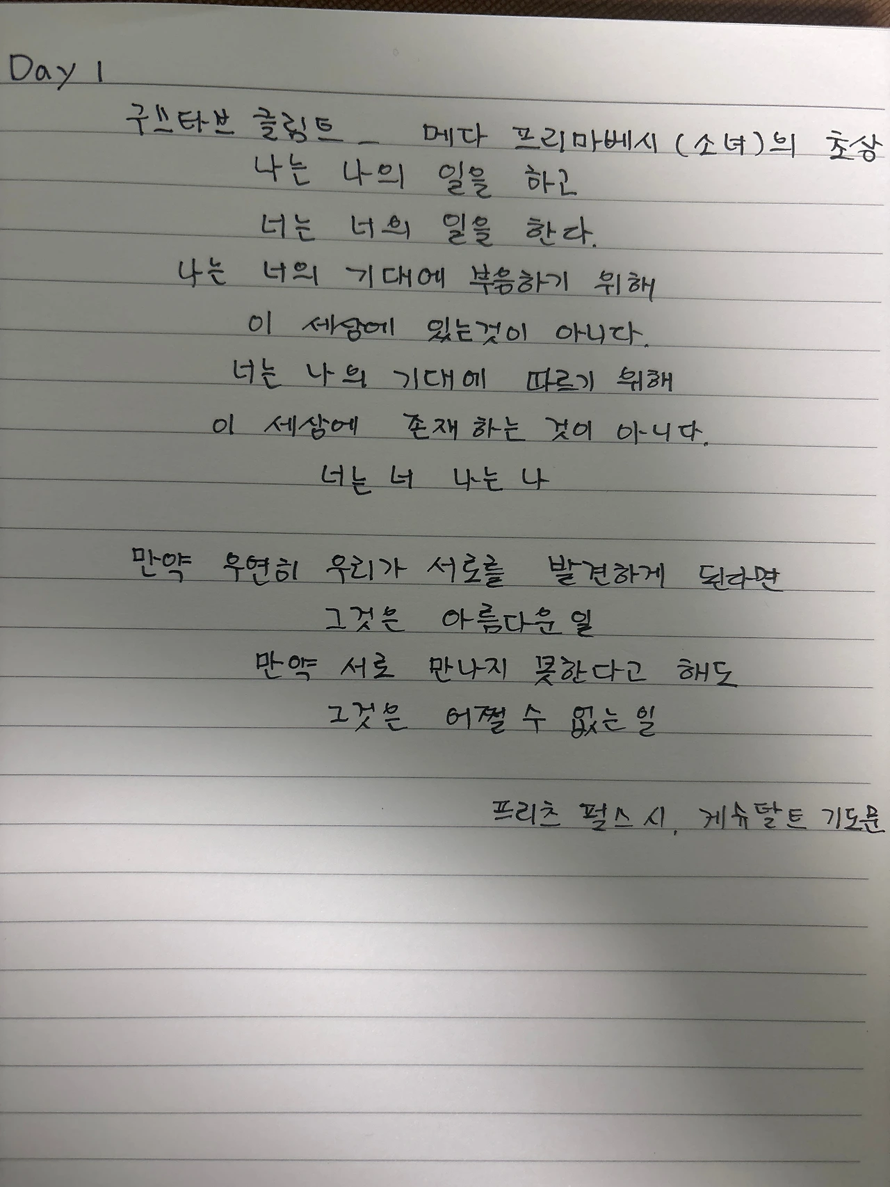 임지영 작가와 함께하는 100일 필사 첼린지가 오늘부터 시작되었다. 매일매일 필사를 하며 이곳에 흔적을 남겨나갈것이다
