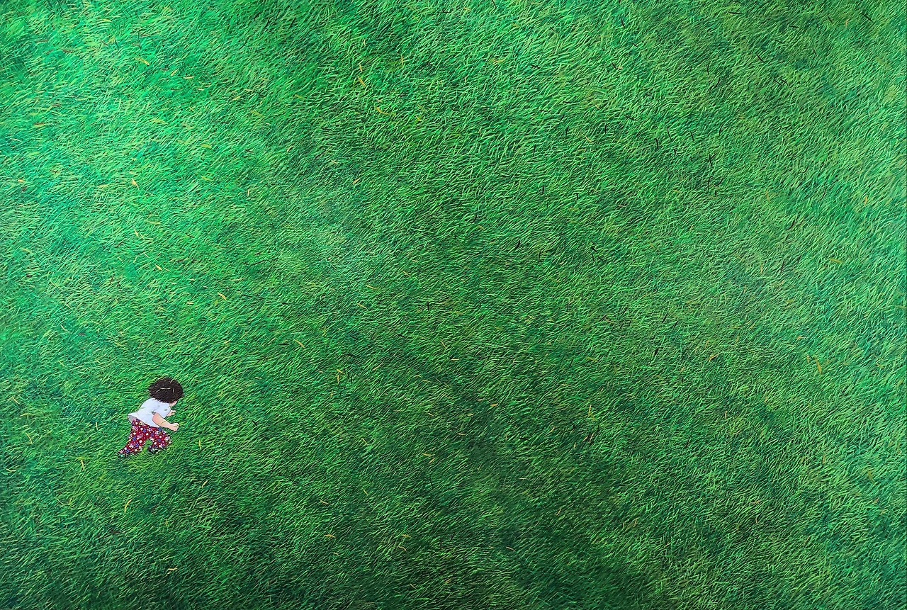 넓은 초록빛 들판 속,