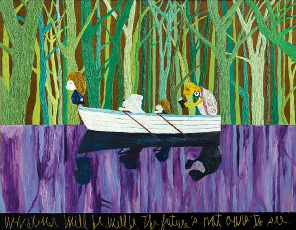 세 명의 인물이 한 척의 배에 올라 있는 장면을 담고 있다.