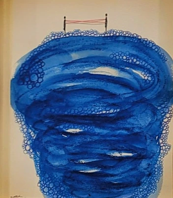 푸른색의 실들이 소용돌이치며 서로를 감싼다.
