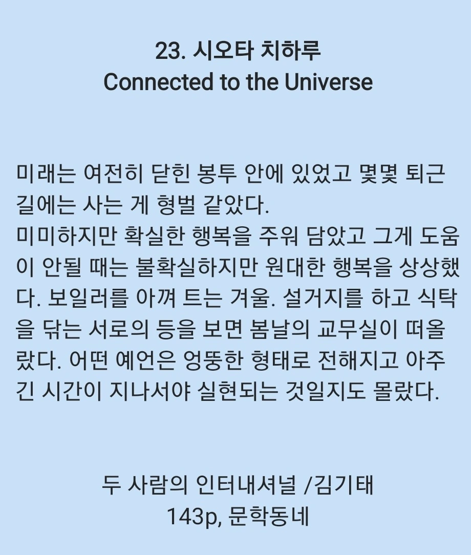 김기태의 『두 사람의 인터내셔널』 속 문장처럼,