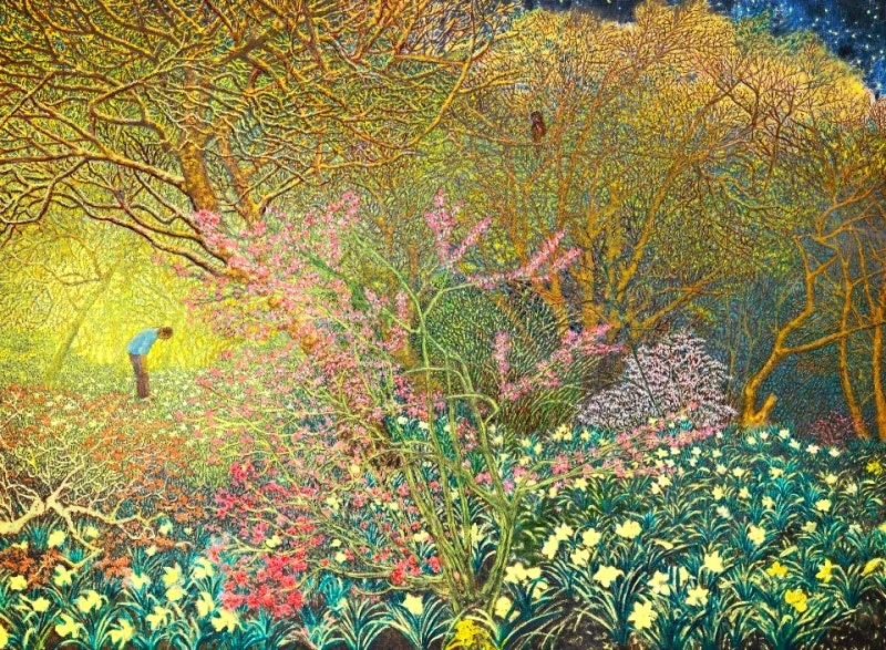 화려한 색채의 숲과 그 속의 한 인물을 통해