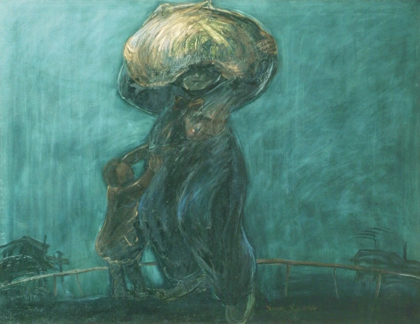 삶의 고단함을 온몸으로 짊어진 어머니의 모습을 그린 작품이다.