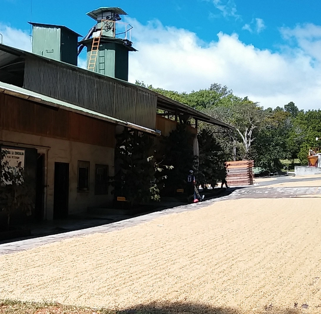 생두 제조 공장은 농장 안에 위치하고 있었다. 마당엔 빨간 체리가 빈틈없이 빼곡하데 널려 있었다 설명으로는 그동안 워시드 공법으로만 생두를 생산했는데 올해부터 네추럴로도 생산해 내기위해서 햇빛에 말리는 중이란다. 다른 한켠에는 워시드 공법으로 제조된 생두들이 파나마의 강렬한 태양아래에서 건조되고 있었다.