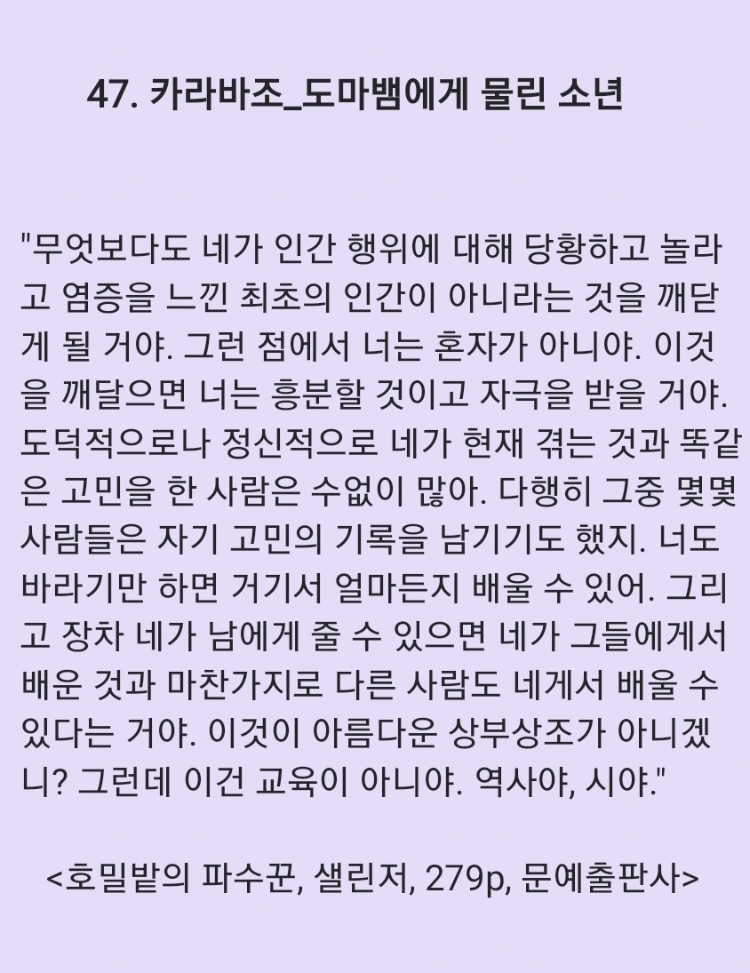 그 길에서 조금 덜 아프기 위한 지혜를 남겨주었다.