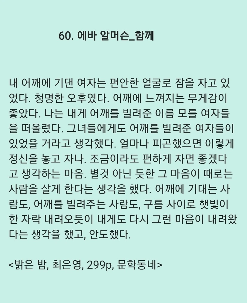 그리고 잠시 서로의 무게를 나누고 있다는 암묵적인 합의.
