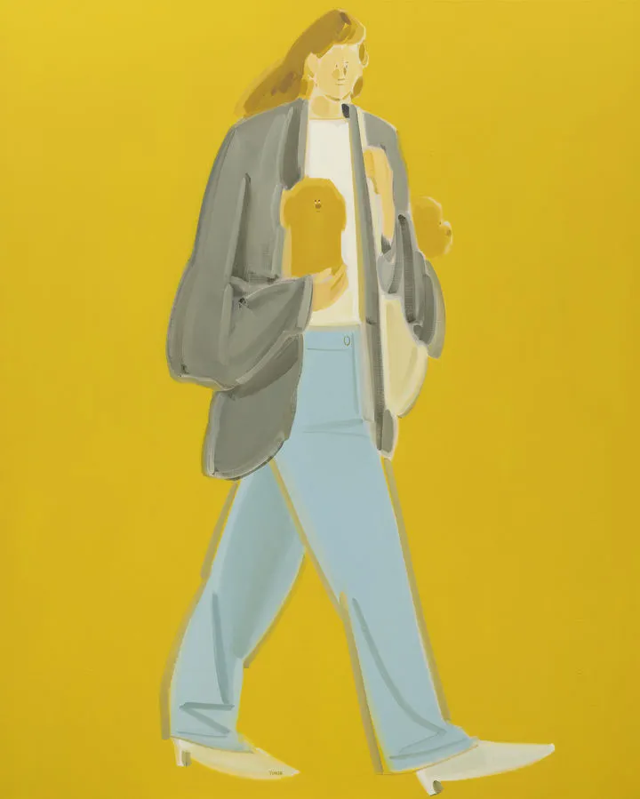 그의 작업에 등장하는 인물들은 특정한 서사를 갖기보다, 우리가 매일 스쳐 지나가는 익명의 존재들에 가깝다. 얼굴은 종종 단순화되거나 지워지고, 자세와 색채만이 남는다. 이는 개인의 정체성을 강조하기보다, 동시대를 살아가는 ‘상태’로서의 인간을 드러내기 위함이다.