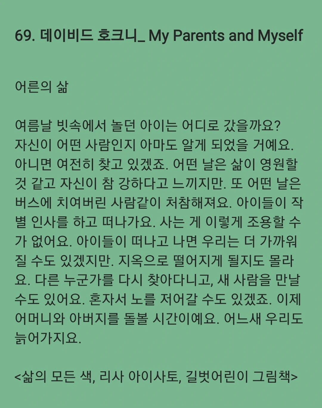 〈My Parents and Myself〉는 데이비드 호크니가 자신의 부모와 자신을 함께 그린 작품이다.