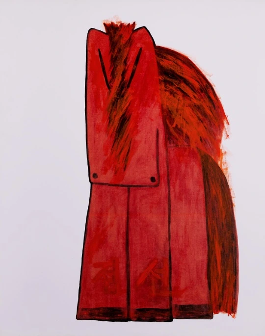 〈빨간 말〉은 김점선의 대표적 도상인 ‘말’을 단순화된 형태로 제시한 작품이다. 사실적 묘사를 배제하고 평면적 구성과 강렬한 붉은 색채를 통해 대상의 생명력과 에너지를 강조한다. 색과 선은 외형을 재현하기보다 감각과 정서를 직접적으로 드러내는 조형 언어로 작동하며, 구체적 서사를 제시하지 않고 관람자의 해석에 열려 있는 구조를 지닌다.
