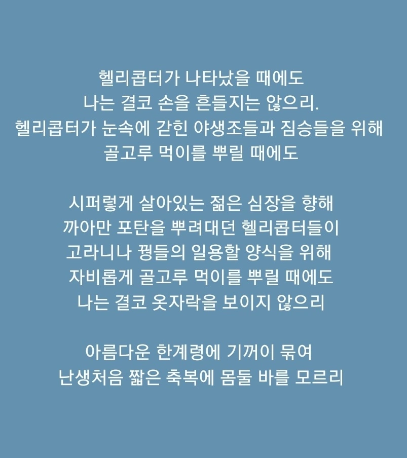 일궈낸 이 푸른 파동 앞에 서면