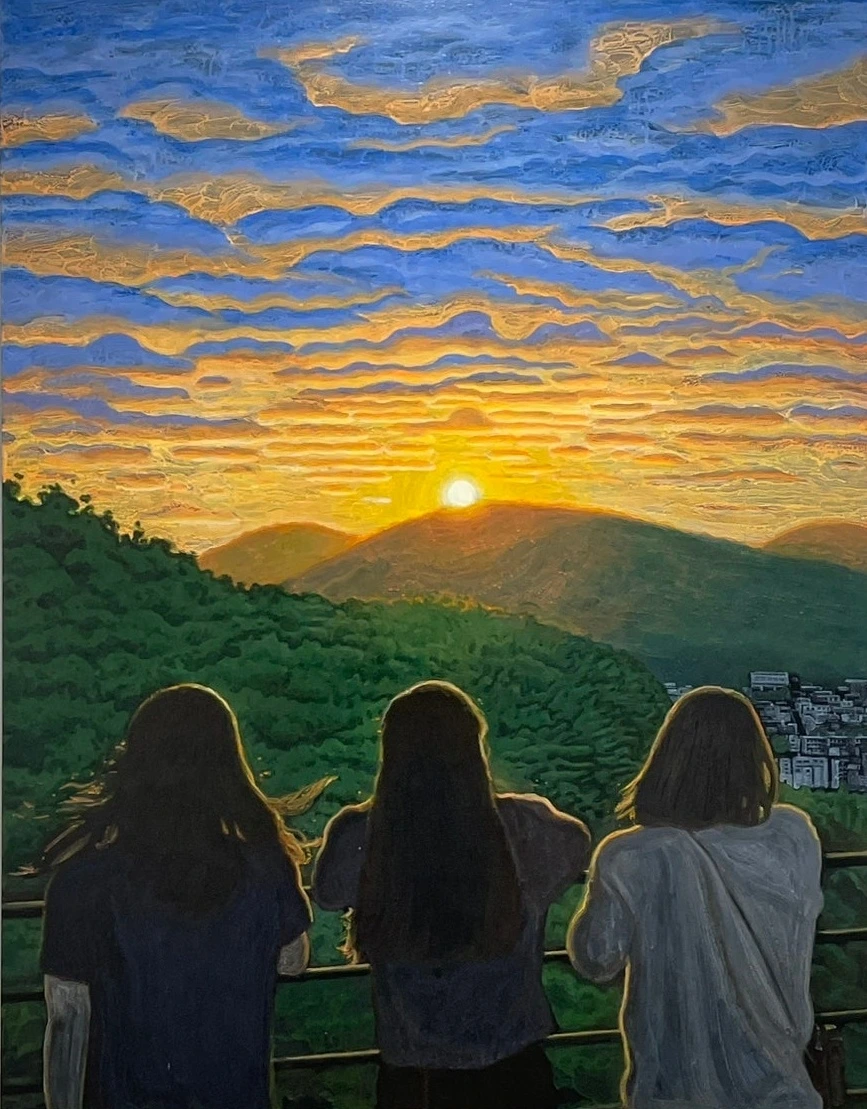 세 여인이 나란히 서서 황혼을 바라보고 있다. 저물어 가는 해의 잔광이 그들의 얼굴에 따스하게 스며들고, 세상은 온통 붉은빛으로 일렁인다. 그 그림을 가만히 보고 있으면 함께 나이 들어가는 친구들의 얼굴이 겹쳐진다. 친구의 얼굴에 패인 주름을 바라보는 마음은 내 얼굴을 거울로 들여다보는 것처럼 애틋하고도 안쓰럽다. 그래서일까. 추억을 공유한 이들과 여행지에서 맞이한 황홀한 풍경은 언젠가 다시, 꼭 함께 보고 싶은 영원한 장면으로 남는다.