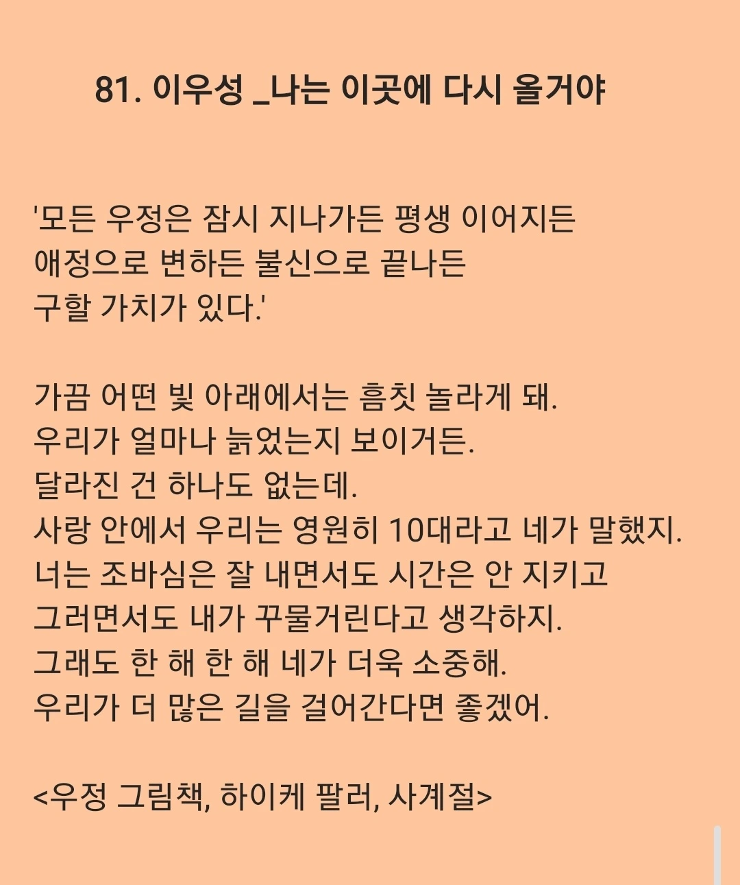 모든 우정은 형태를 바꾸거나, 때로는 멀어지기도 하지만