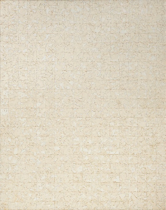 이 과정에서 화면에 나타나는 균열과 격자는 우연과 통제, 생성과 제거가 공존한 결과이며, 붓질보다는 물질의 변화와 제작 과정 자체가 작품의 핵심 요소로 작용한다. 색채는 주로 백색, 회색, 담색 계열로 제한되며, 색의 표현보다는 표면의 구조와 깊이에 초점이 맞추어져 있다.