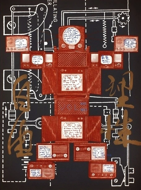 〈진화 혁명 결의〉는 여러 대의 텔레비전을 결합해 인간 형상을 연상시키는 구조로 구성된 작품이었다.
