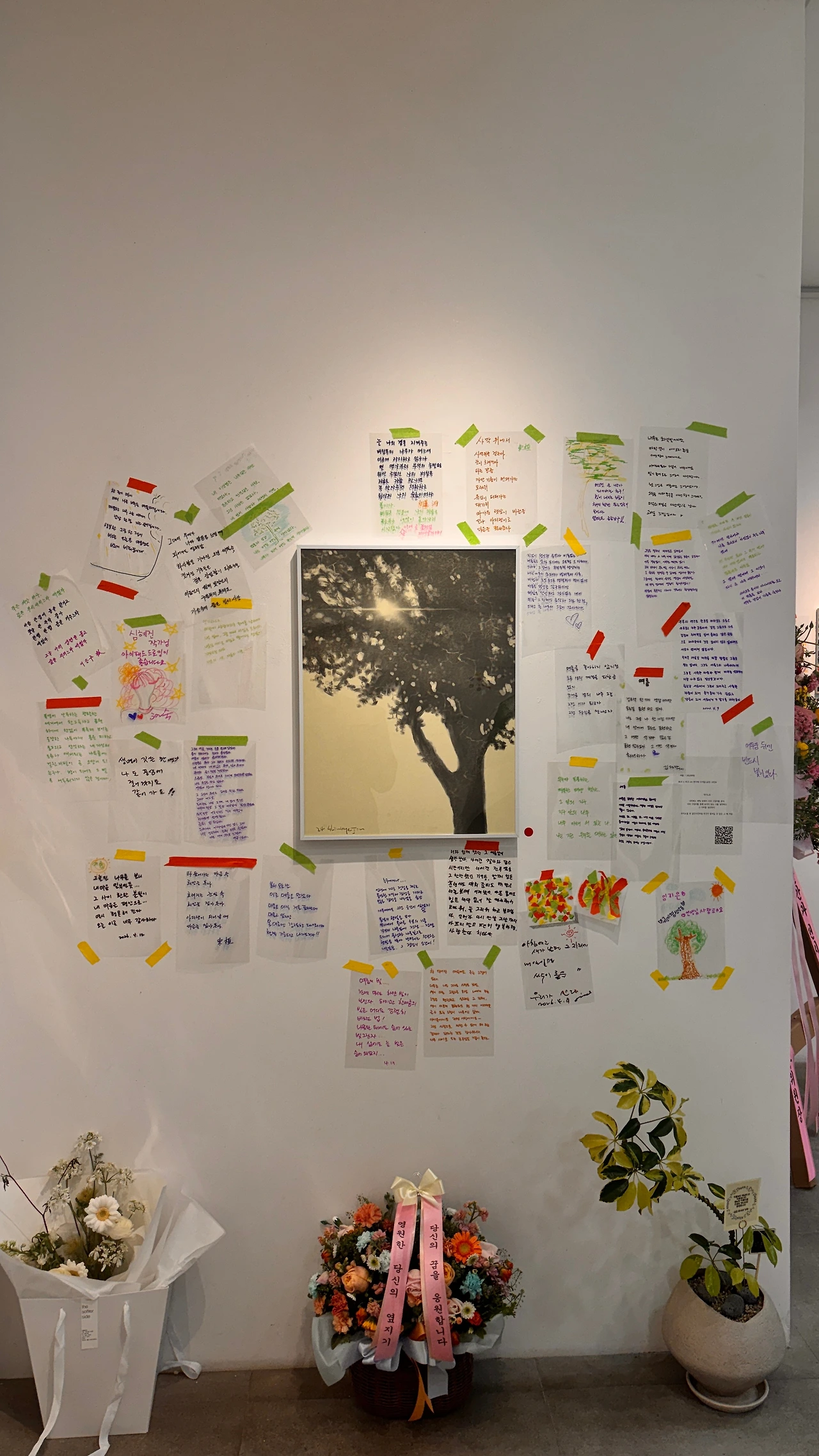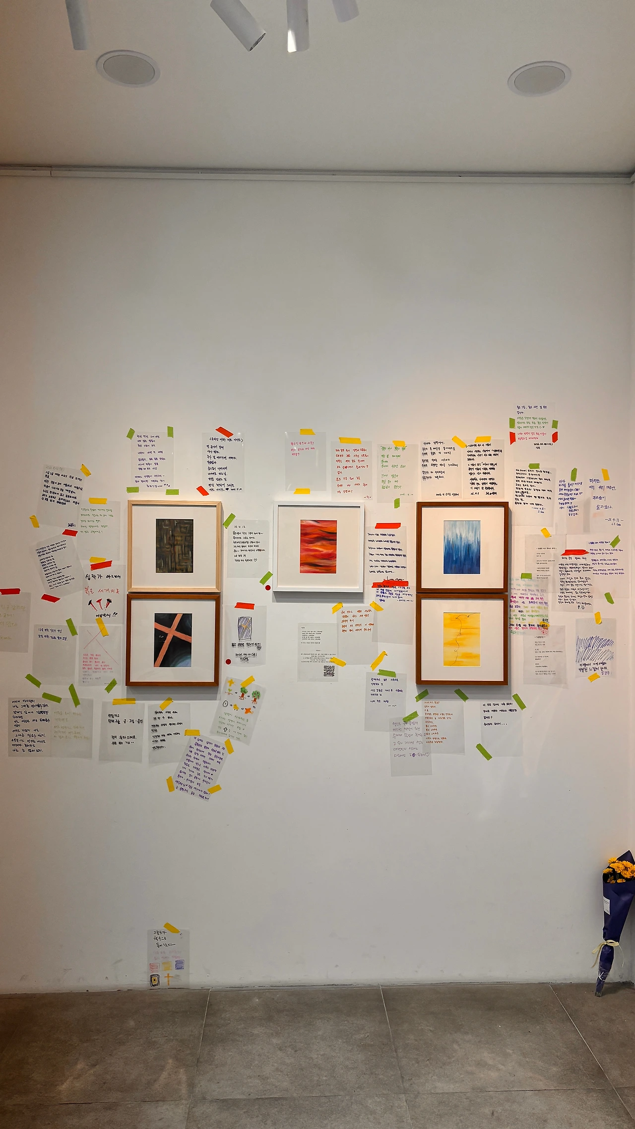 그러나 시간이 흐르며 관람객들의 고백이 담긴 쪽지가 벽에 붙기 시작했고, 그 글들은 어느새 전시의 새로운 얼굴이 되어갔다. 우리가 의도했던 전시의 진정한 모습은 인위적인 연출이 아니라, 시간을 통과하며 사람들의 온기로 채워지는 과정에서 자연스럽게 완성된 셈이다.