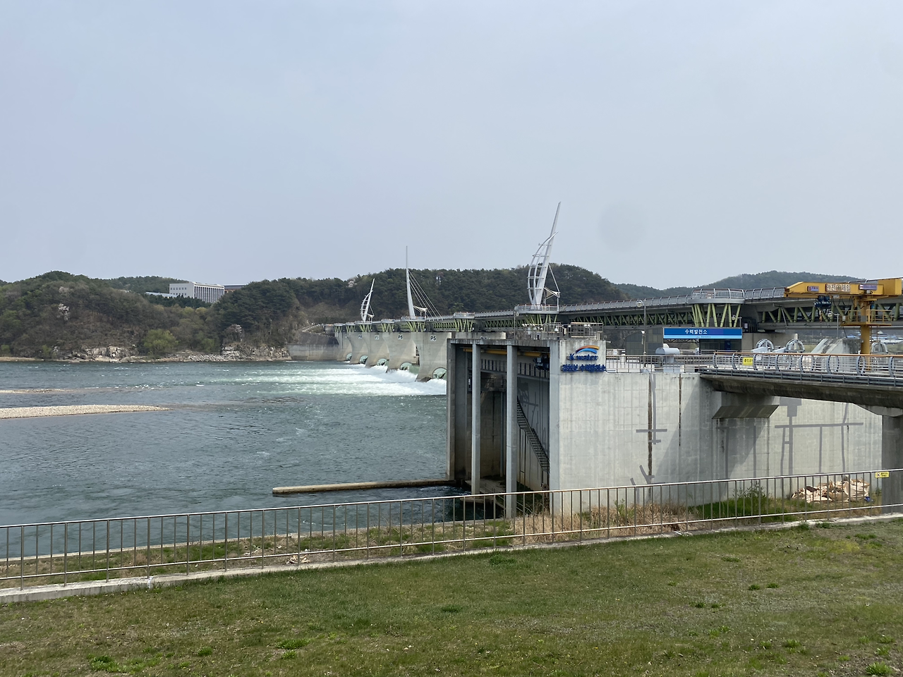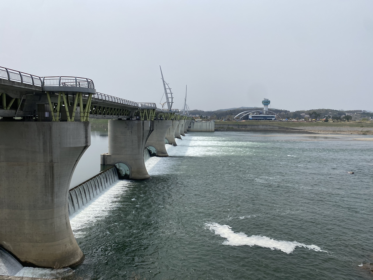 드디어 여주보를 지나 식사 장소에 도착했다.