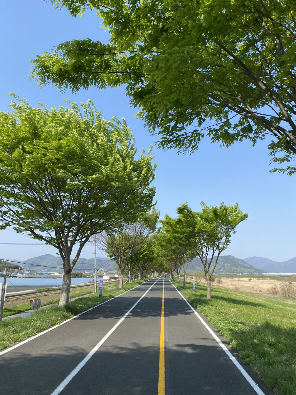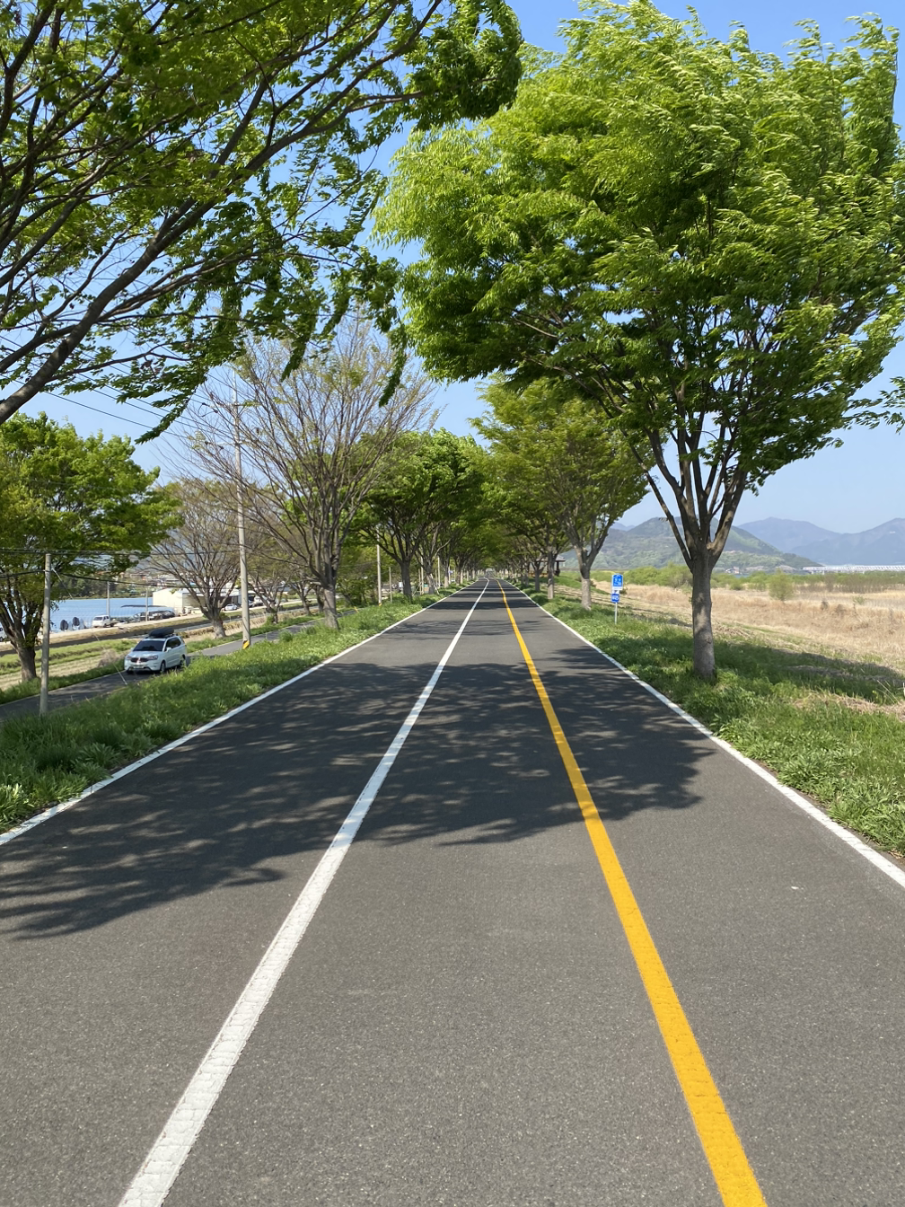 양쪽으로 뻗는 느티나무 사이로 달리는 기분은 더할 나위 없이 행복했다. 오로지 나를 위해 만들어 놓은 길인 양 아무도 없는 도로를 시원한 바람을 맞으며 달렸다. 4일 동안 경험한 도로중 최고의 도로였다.