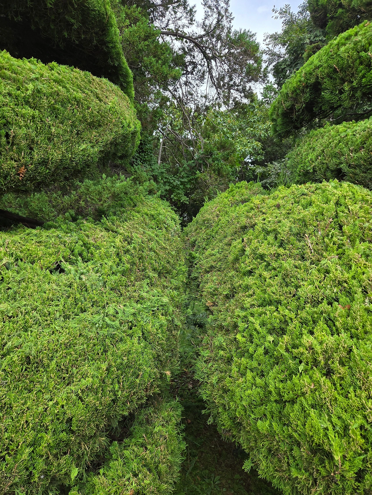 혹시 우린 주위 관계를 바람도 통하지 않게 빡빡하게 맺고 있지 않은지, 좀 더 여백을 가질 필요가 없는지, 가이즈카 향나무 전지 모습을 보며 엉뚱한 생각을 한다.