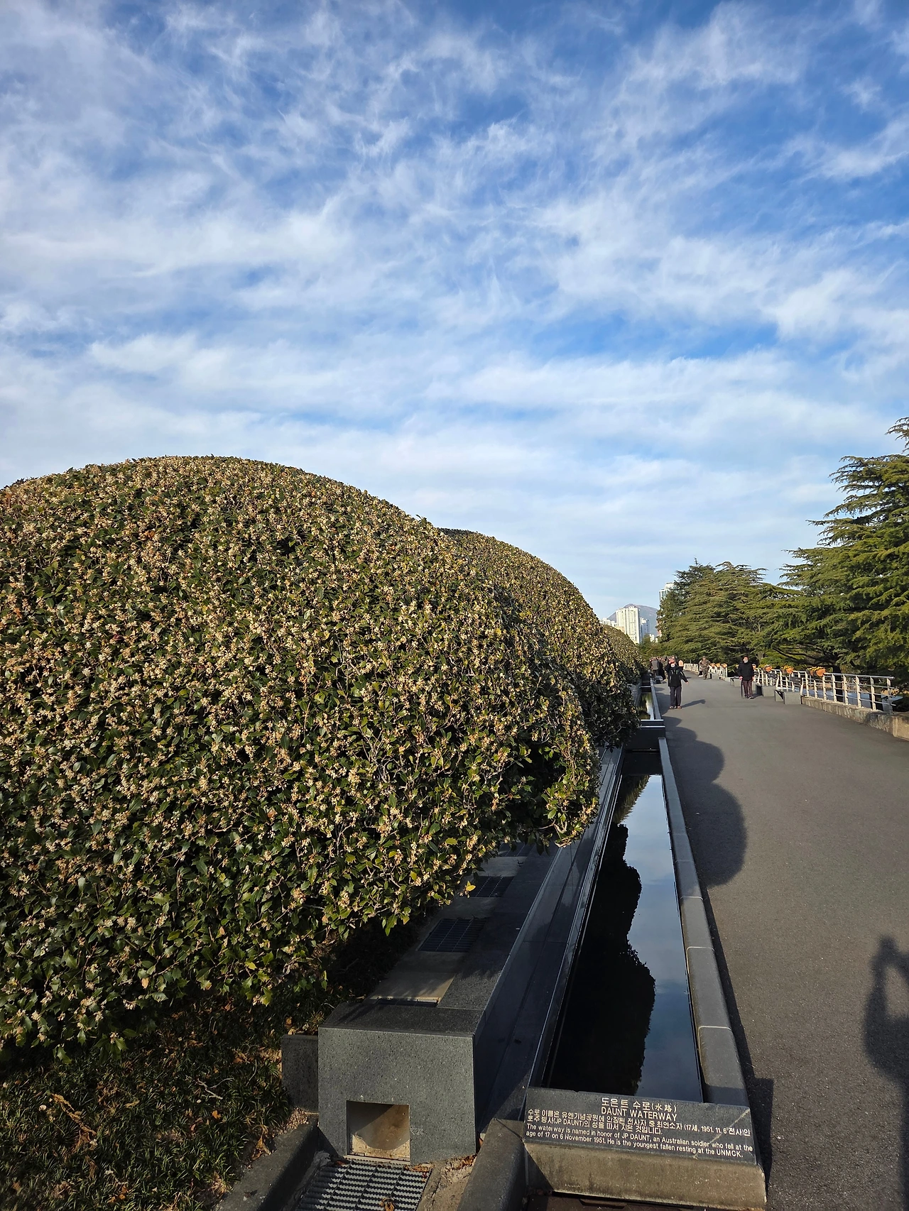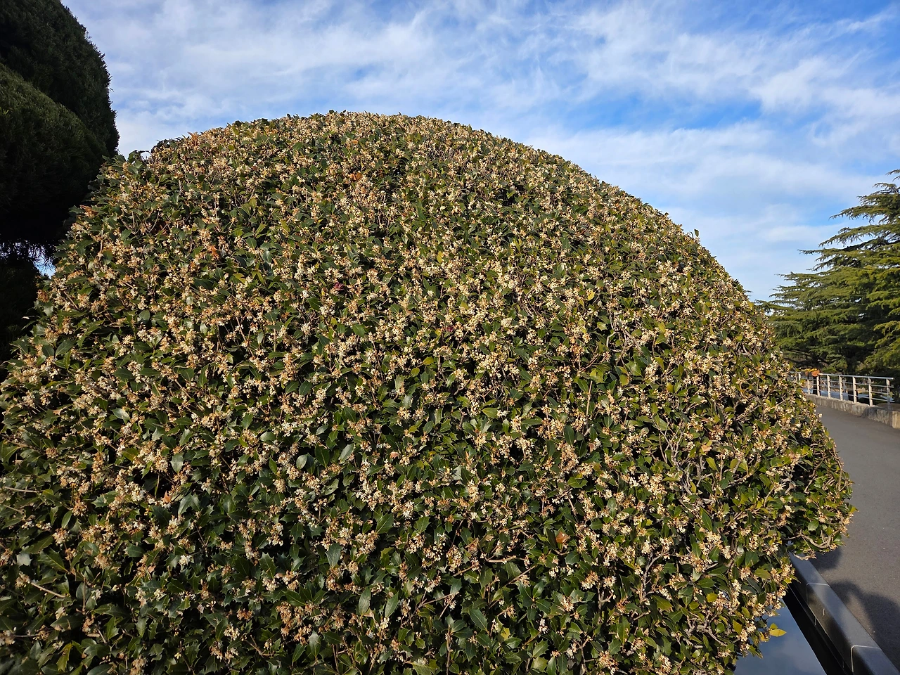 얼마 전 공원 입구에 있던 동백나무 대신 금목서 군락을 조성했다.