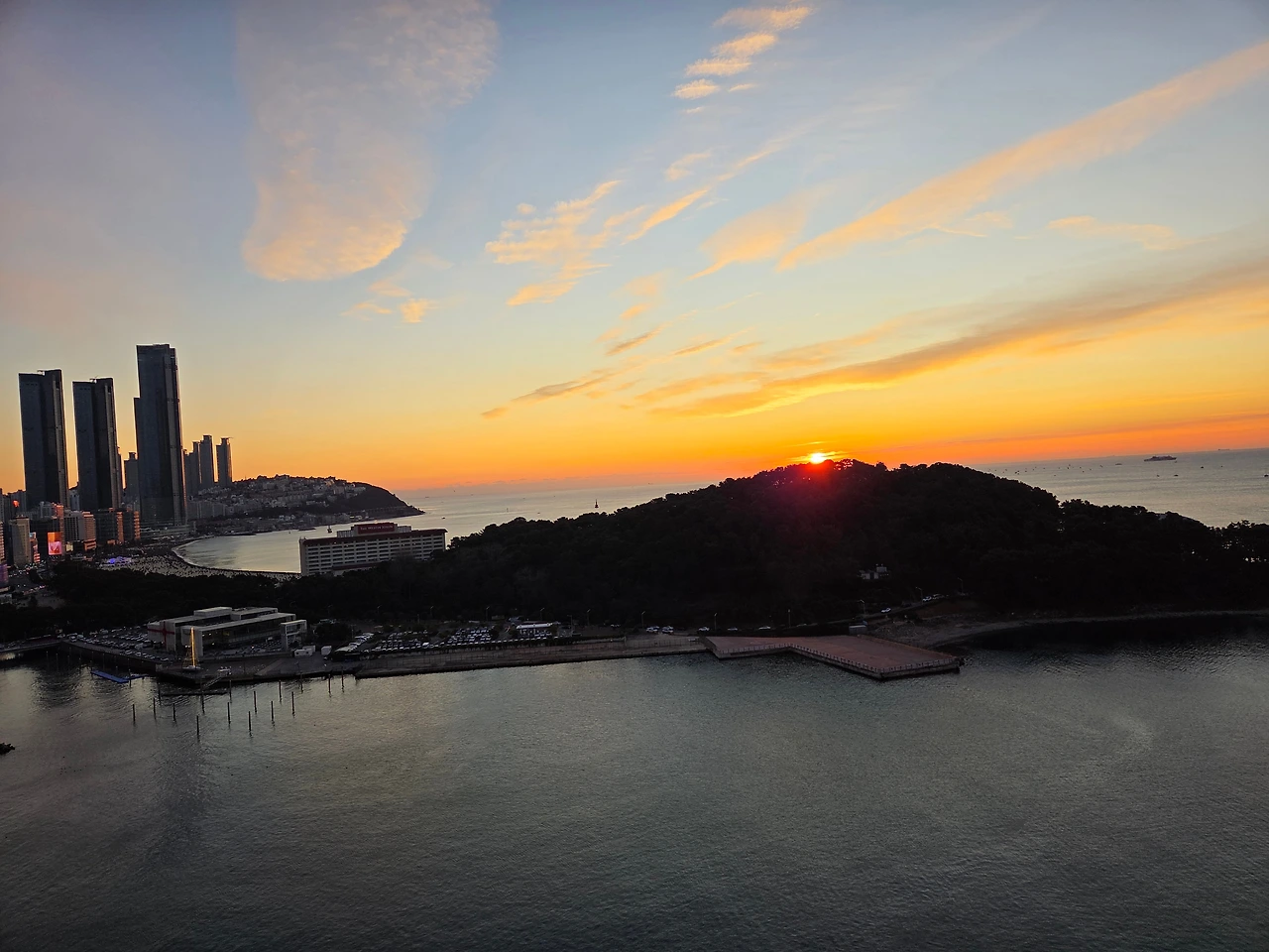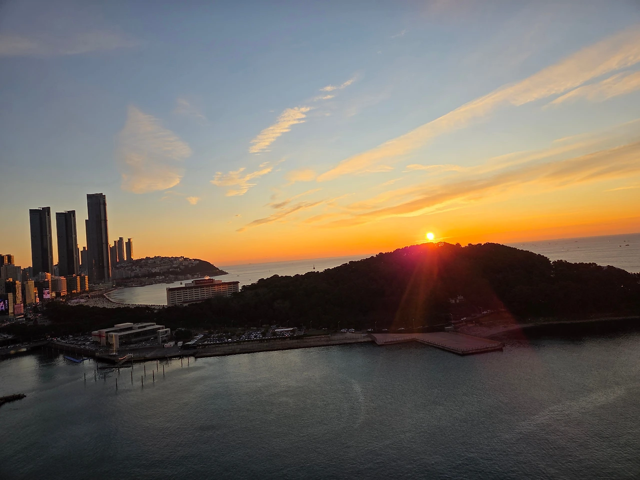 해운대 쪽 하늘을 바라본다.