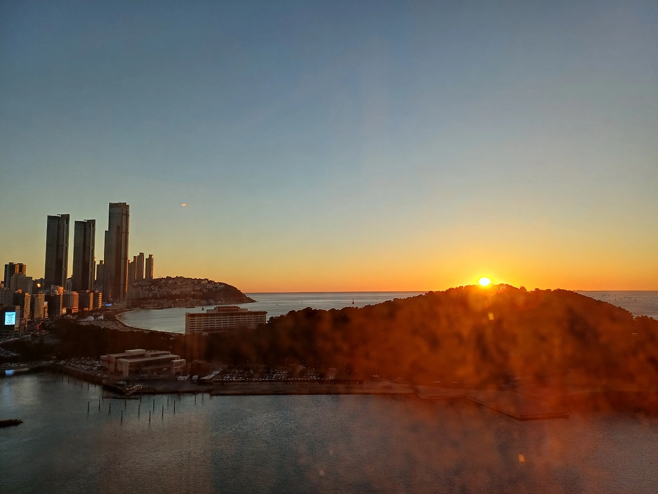 아직 새벽이 오기 전처럼 어둡다. 희미하게 날을 밝히는 붉은 여명이 새해희망의 빛처럼 주위를 밝힌다. 바닷물도 해변의 흉측스러운 고층 아파트도 제 모습을 드러낸다.