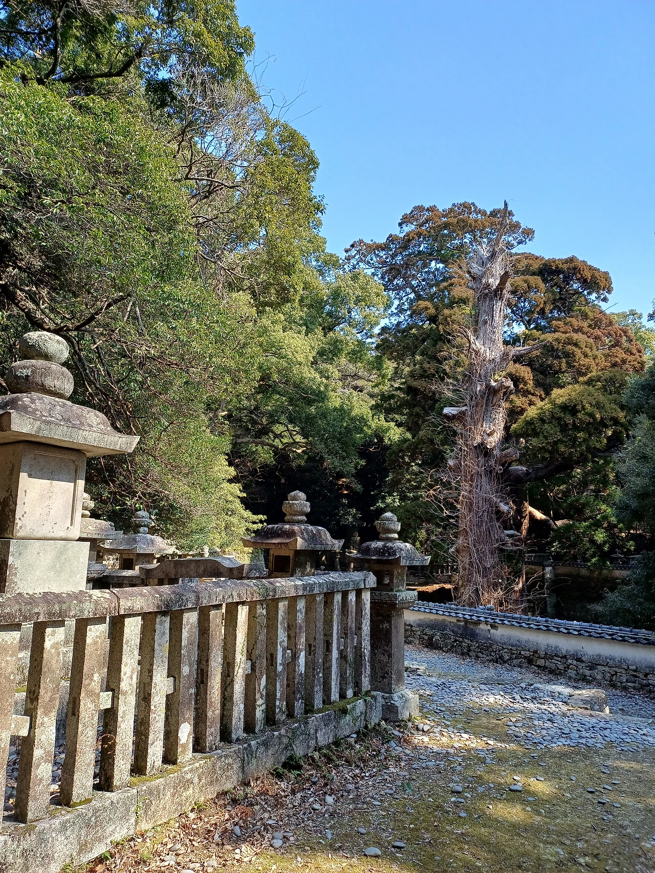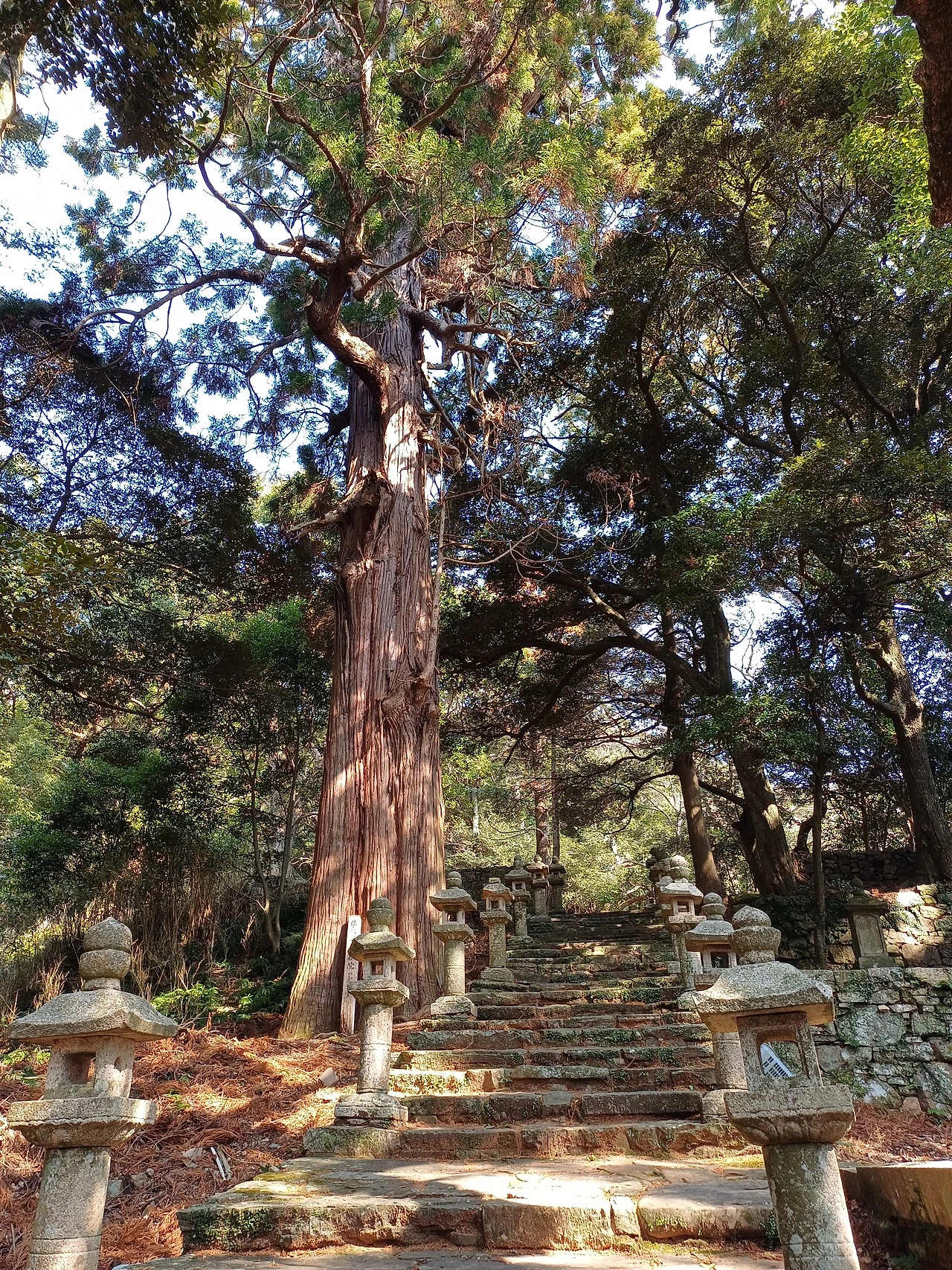 이즈하라엔 '만소인'아라는 고찰이 있다. 그곳엔 귀족들의 비석이 있는데 좀 비교가 그럴지만 미니 앙코르와트 느낌이 난다고 동료가 뜬금없이 이야기한다. 앙코르와트 가면 천년 고목이 있듯이 여기 천년이 넘는 삼나무가 내 두 팔로 안으면 4~5번은 재야 할 정도로 굵고 크기는 고개를 제쳐 보아야 할 정도다. 비석과 천년 고목 어디엔 귀신이 득실득실할 듯하고 밤에 분명히 도깨비불을 하는 귀신이 나올 게 분명하다. 납량특집 촬영지로도 손색이 없어 보였다.